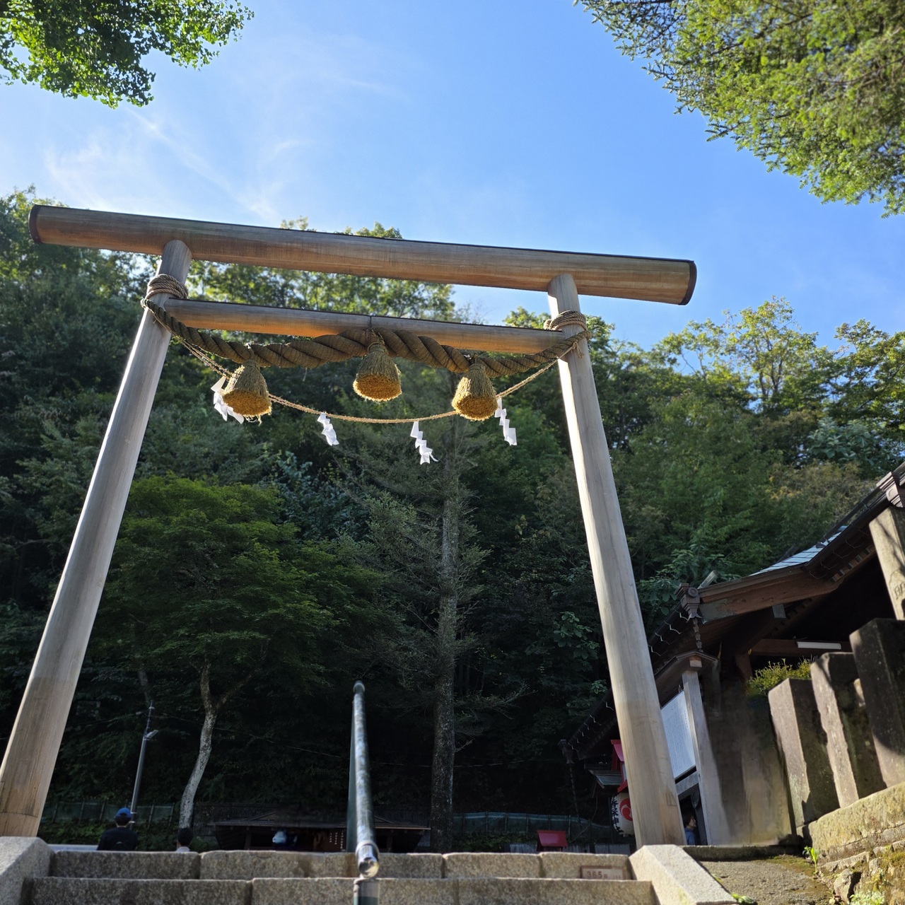 鳥居の手前に社務所があり、御朱印を集めている家族が初穂料を納め頂きました。