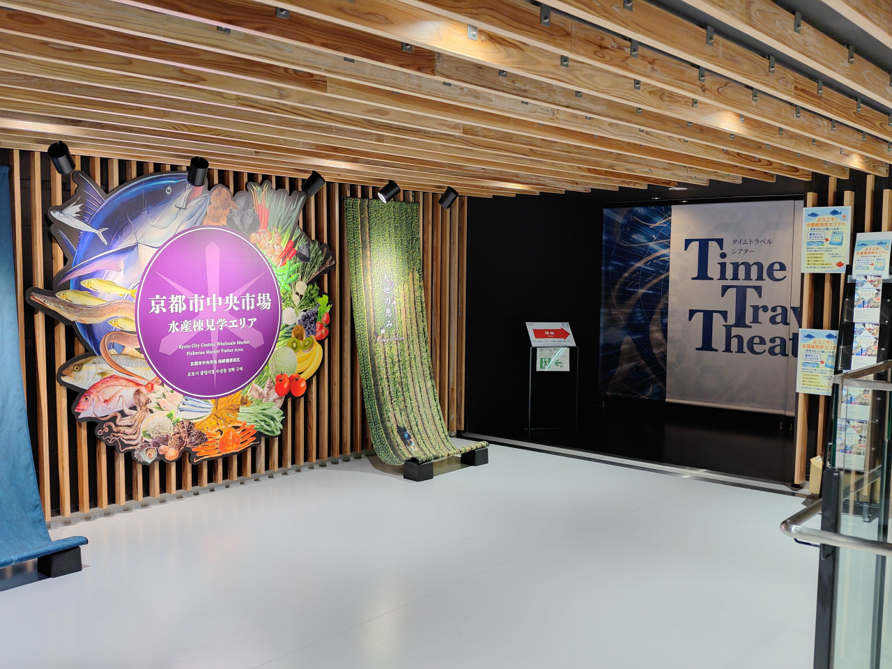 2023年に新設された水産棟見学エリアは梅小路西京都駅、ホテルエミオン京都と高架歩道で直結している。
