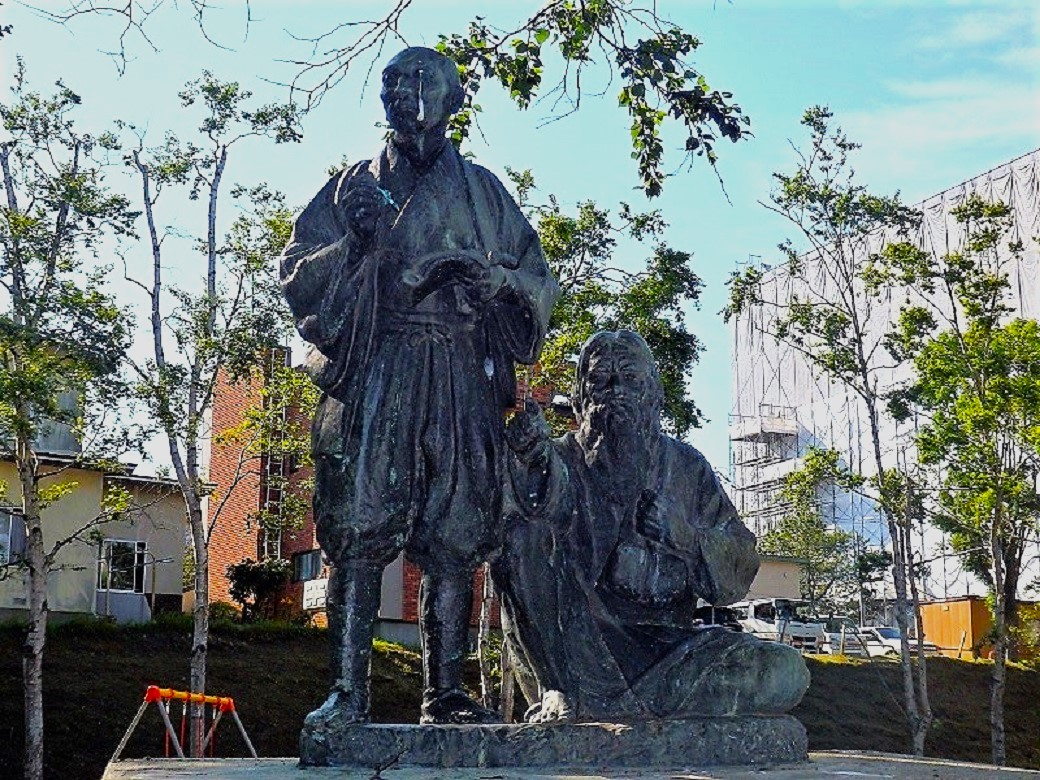 園内には、松浦武四郎蝦夷地探検像や花を持つ天使像など数多く有ります。また、旧釧路警察署を模したトイレも意外で特徴的です。