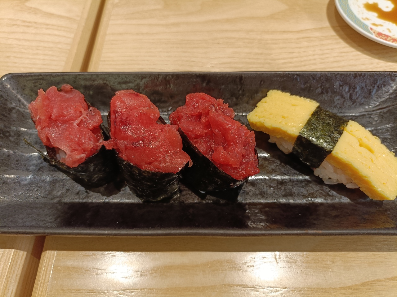 口コミいいお店と行きました。開店の11時に入店、お好みは一貫¥70(税抜き)~ありましたが、ウニは¥750、ウニ、ウニと回転寿司なら10貫も食べる勢いですが、奮発して¥4100のセットに。孫が可愛くても譲らずウニ、いくら食べたおばあちゃんでした。¥70の赤身マグロ、玉子も食べてみました。