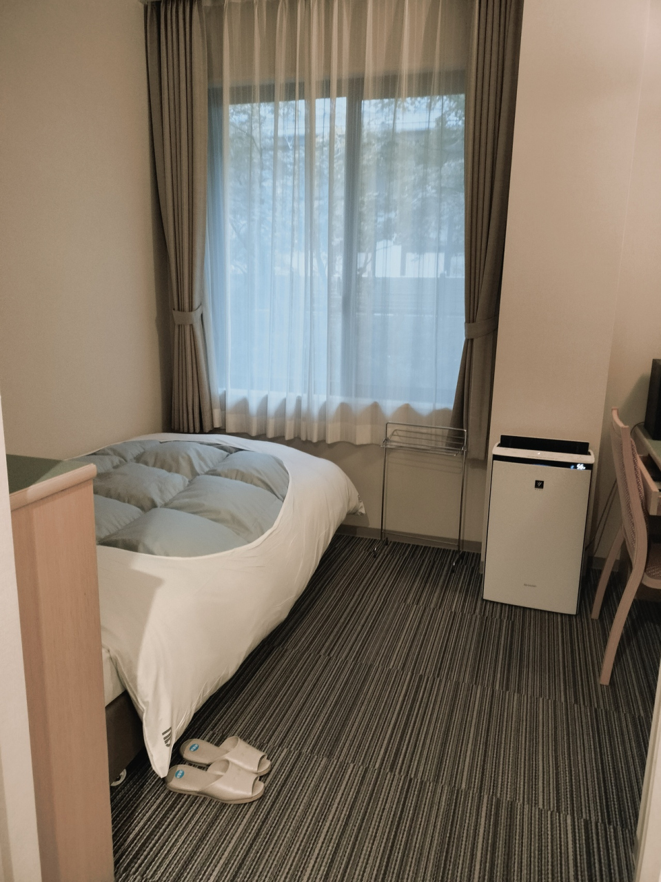 お部屋は、一人旅なので、ビジネスシングルというベッドの部屋。トイレの何とも言えない匂いがあります、消臭剤のきつい匂いみたいな。