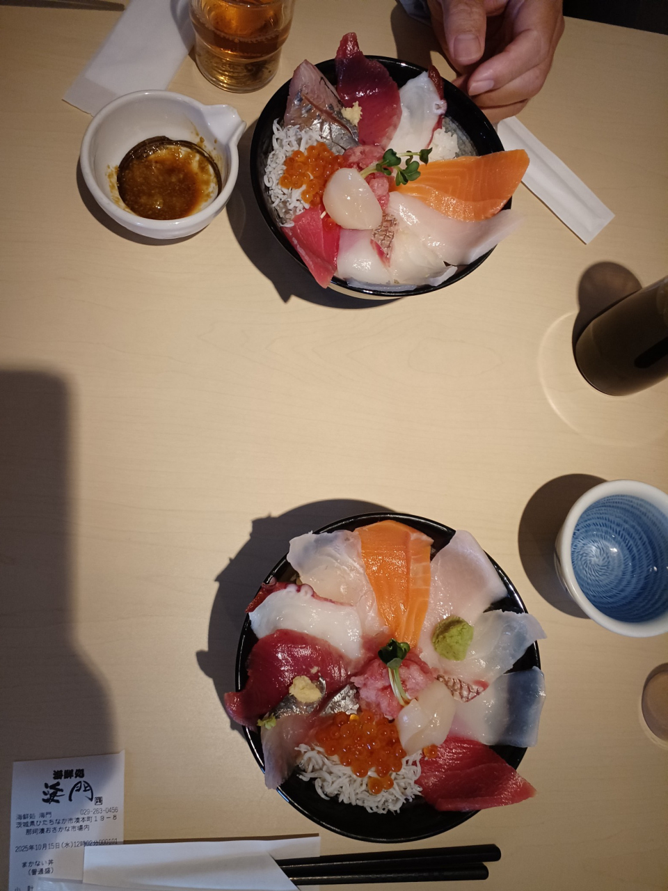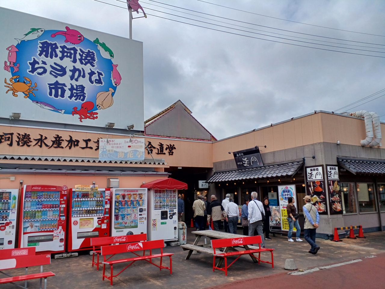 なんと観光客の多いおさかな市場。全国からのお魚が集まっている。旬のサンマ、マグロ、烏賊、エビ、貝類だけでも岩牡蠣、サザエ、ハマグリなど何でもある言ったところです。干物、茨城のお土産も売っている。お客さんは発泡スチロールで大量に買っている人もいる。食堂では新鮮なお魚料理が食べられる。おまかせ海鮮丼を美味しく頂き満足しました。