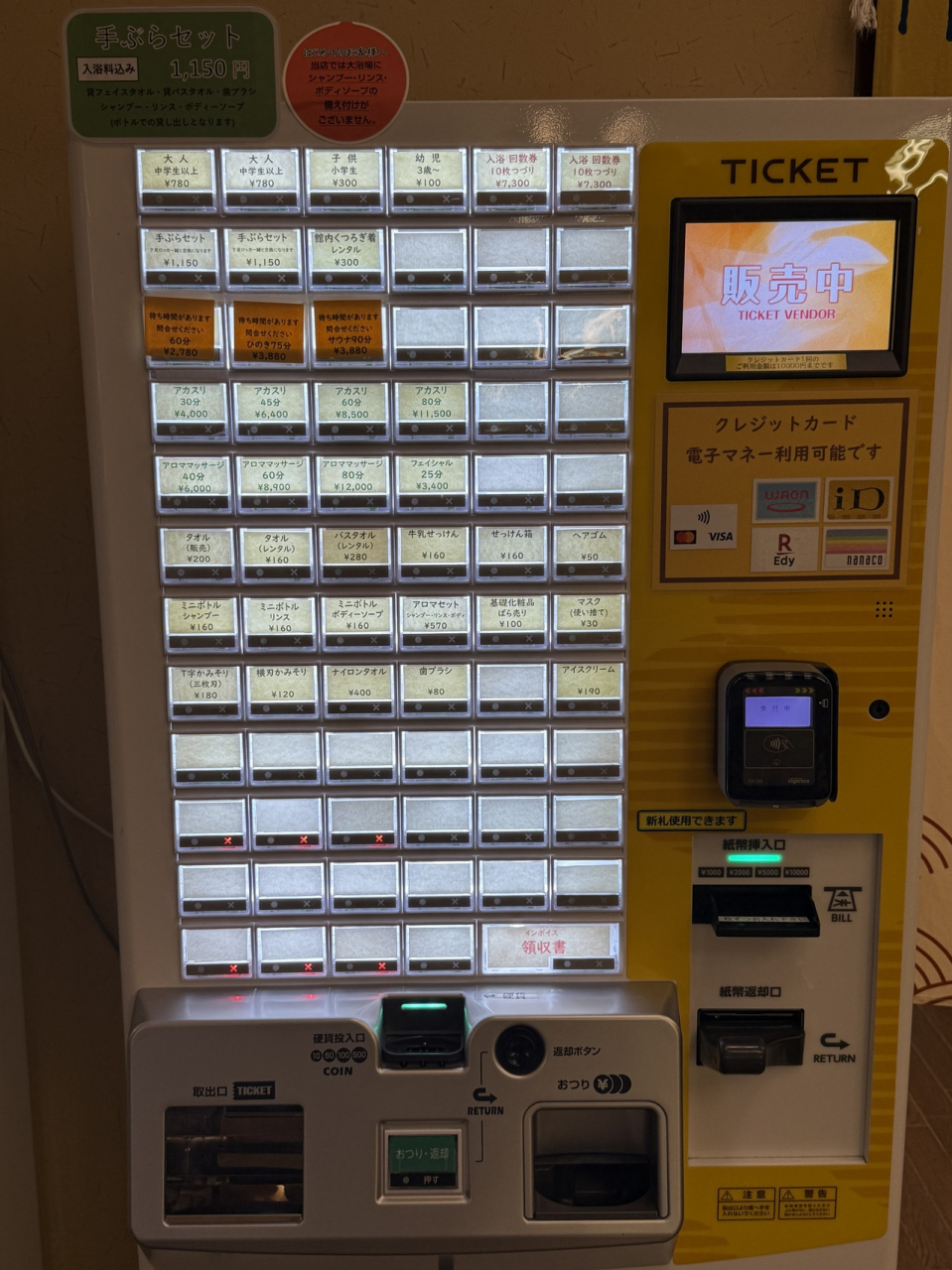 入浴料大人780円 シャンプーやボディーソープ等は無いので要注意