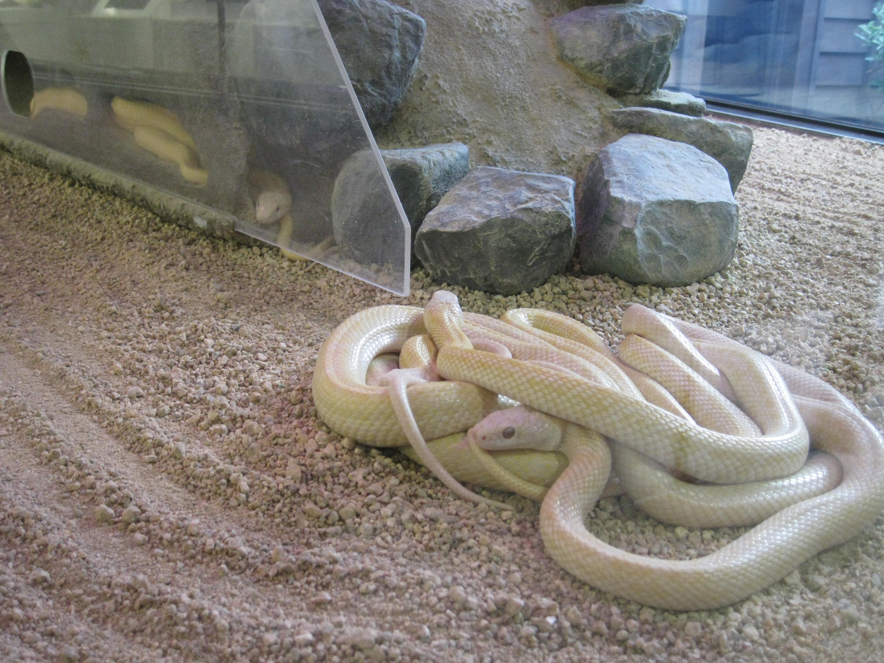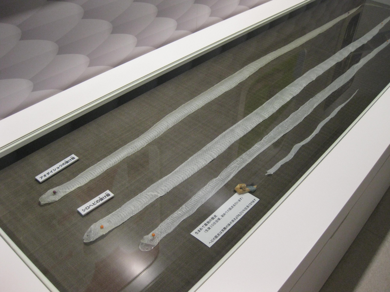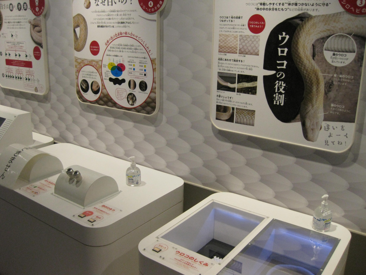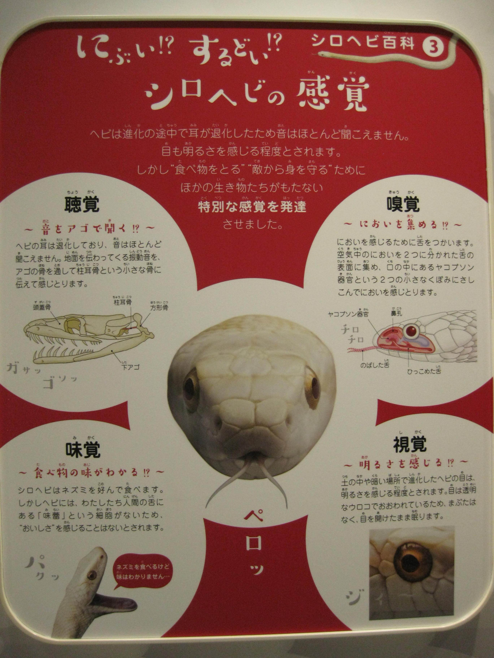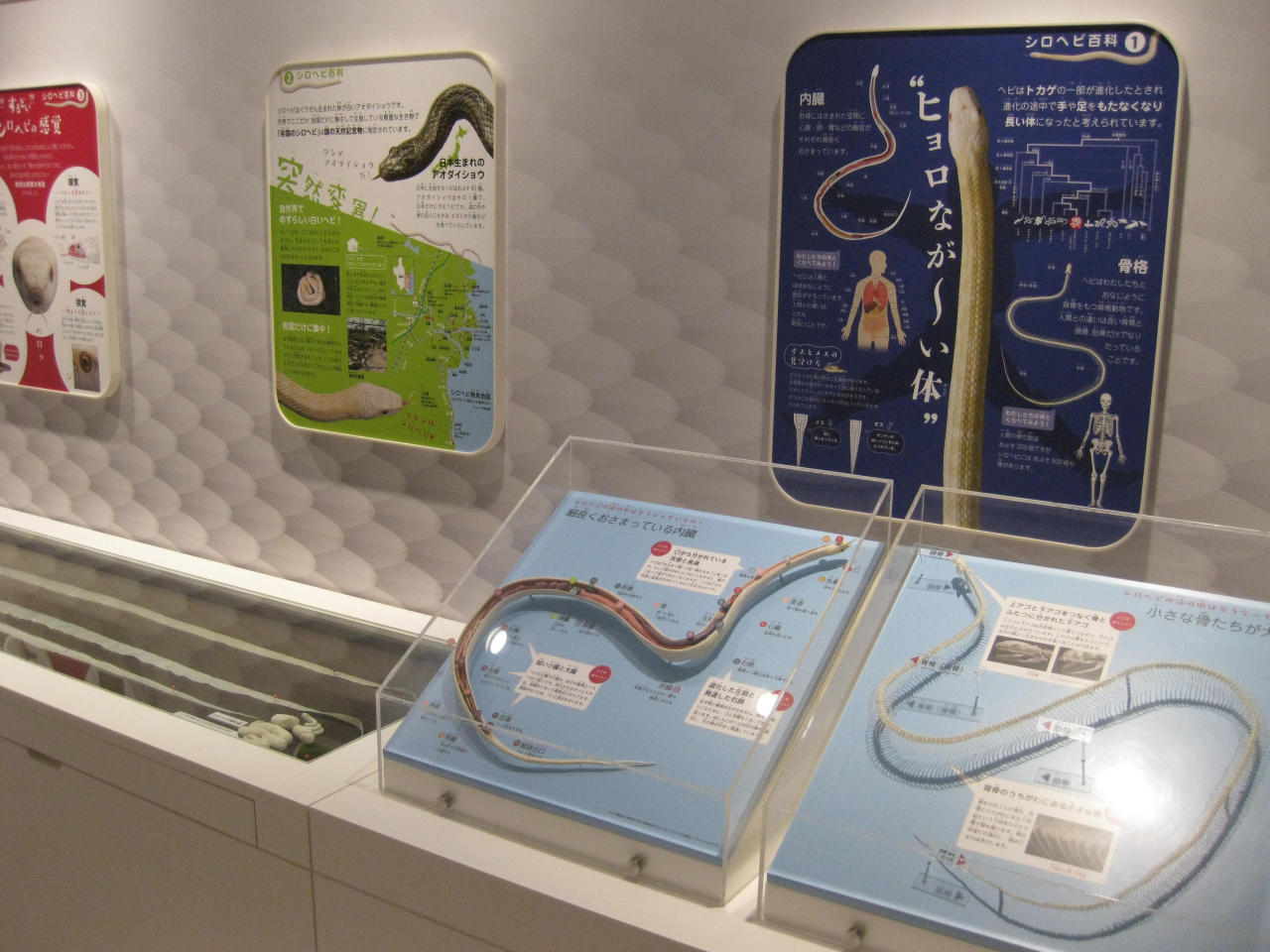 シロヘビをガラス越しに見られる 子どもにもわかりやすくくふうされた展示