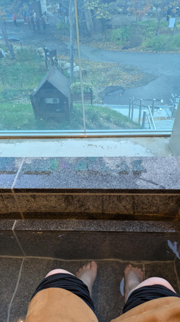 散策路そのものは歩きやすい靴、服装の方が良いかと思いますが、最近出来た無料足湯は車椅子でも利用が出来る構造になっていました。