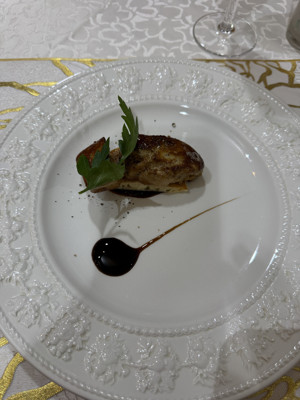 お任せコースでしたが、オマールエビから始まり、お魚のパイ、フォアグラ、牛ステーキ、スープなどどれもおいしかったです。