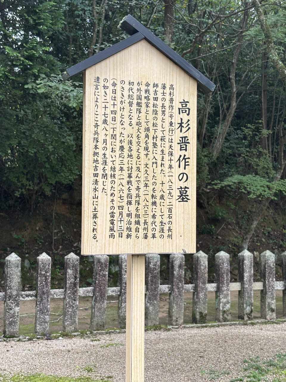 1867年に27歳という若さで亡くなった高杉晋作のお墓があります。