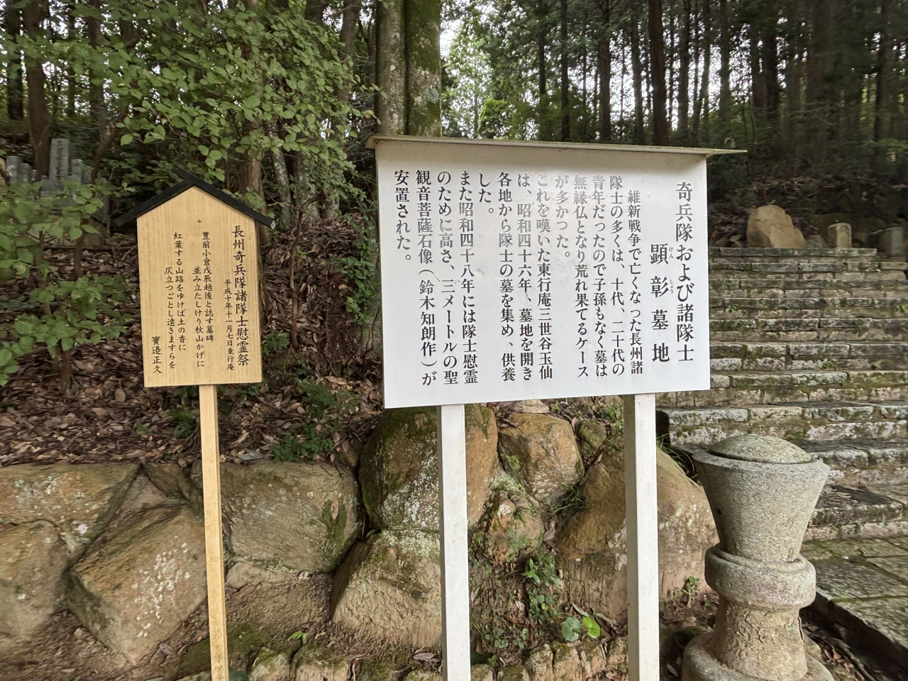 高杉晋作と奇兵隊のつながりを感じる場所でした。奇兵隊隊士やおうのさんのお墓も近くにあります