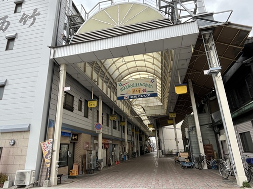 「浜町ガレリア」は丸亀駅から東へ伸びていく「浜町商店街」に並行して一本北側にあります。アーケードがかかっているので「商店街の風情」は楽しめますが賑わいを期待しないほうがよいかも、です。