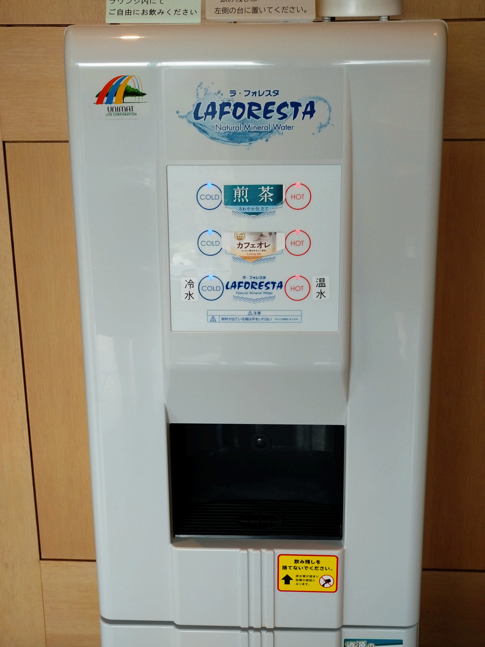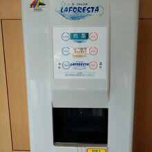 ラウンジには、カフェオレ、お水、お湯、煎茶を