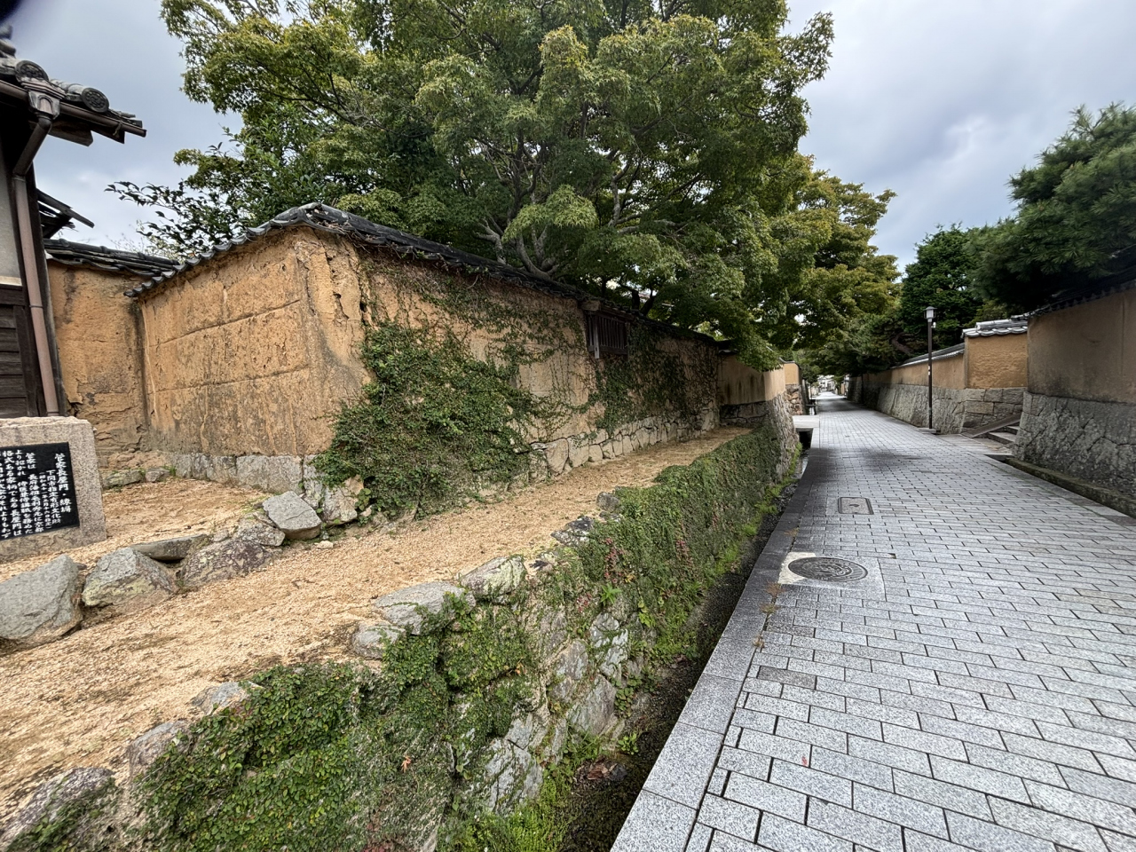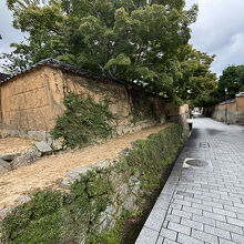 古江小路を歩いていると、見ごたえのある練塀が続く長屋門があります。
