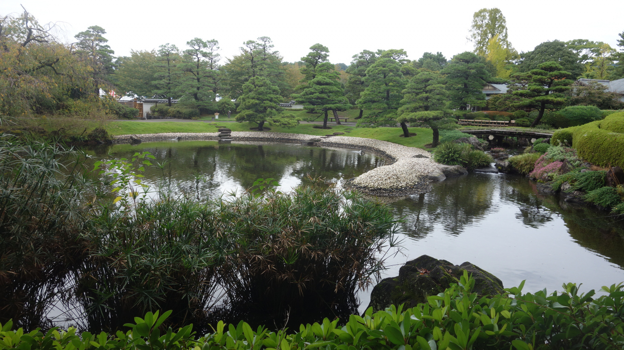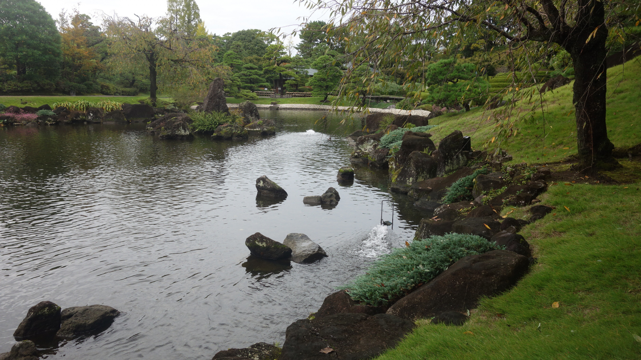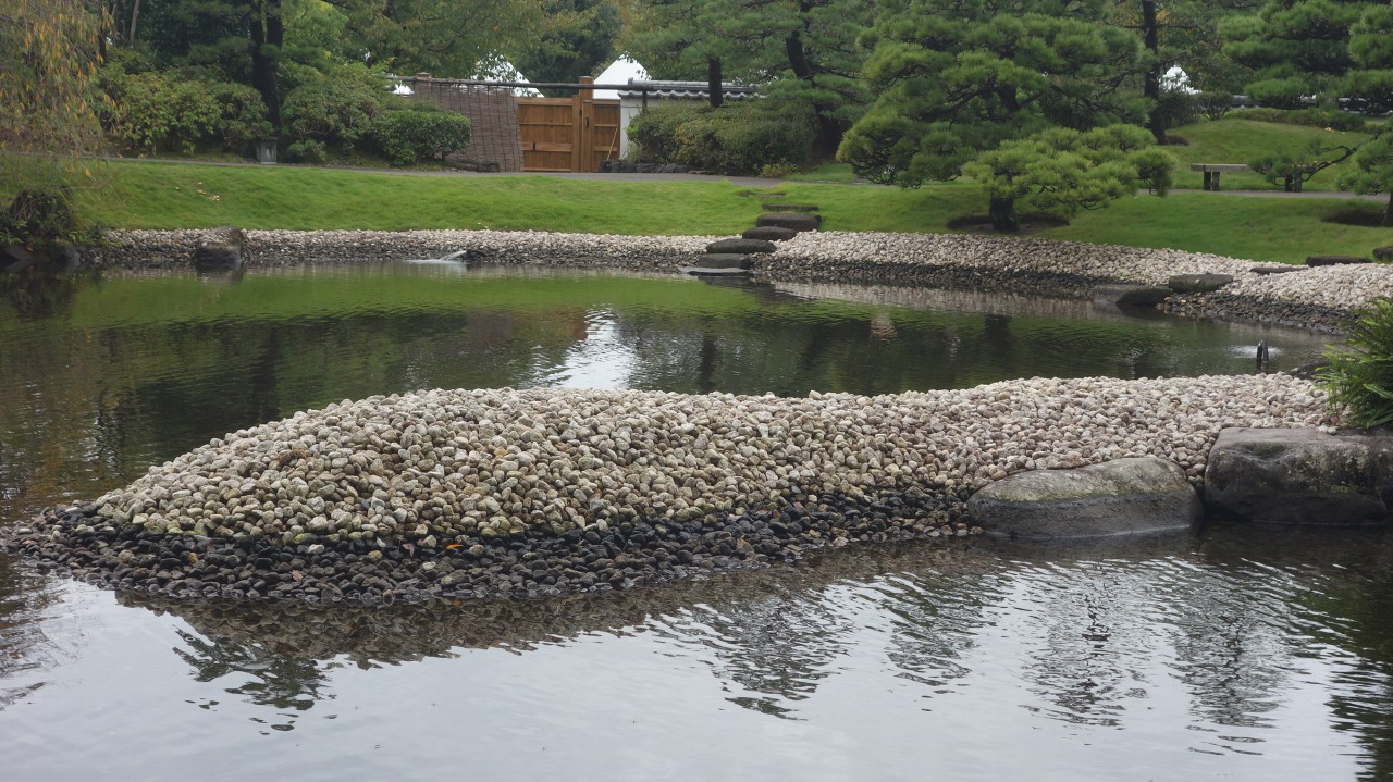 たぶん現代の造園家が設計したものでしょう。典型的な回遊式日本庭園です。池の一角に玉砂利の浜辺をつくったのも、京都の仙洞御所を参考にしたに違いありません。10月26日だったので、桜の木や紅葉の木がどのくらいあるのかわかりませんでした。全般にきれいな庭園で、手入れが行き届いています。静岡市第一に観光名所です。