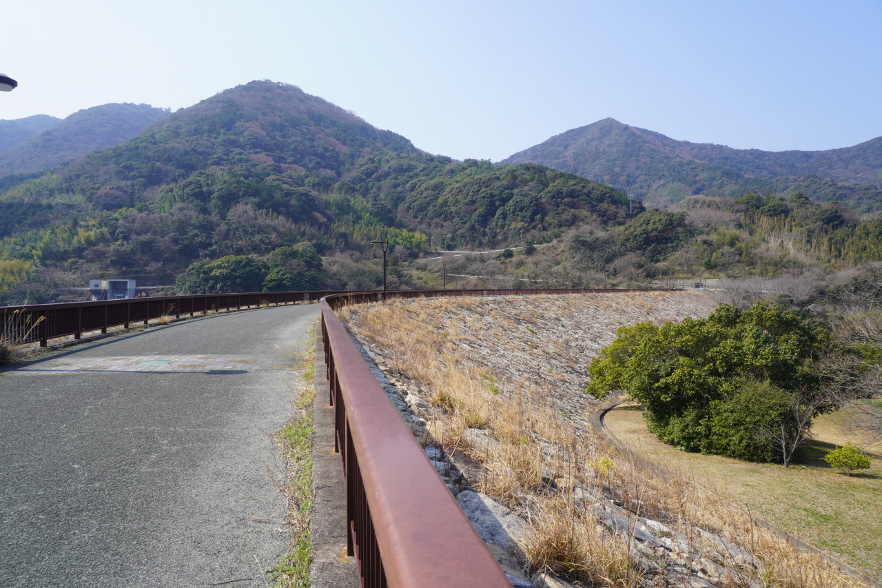 屋代ダム公園は、周防大島の西側。瀬戸内の島にあって、総貯水量155万tを誇る本格的なロックフィルダムの周囲を整備した公園です。ここからは、嵩山もよく見えるし、オレンジロードを通って、このまま周防大島を横断して西側に抜ける道もある。ちょこっと寄っても無駄がないと思います。