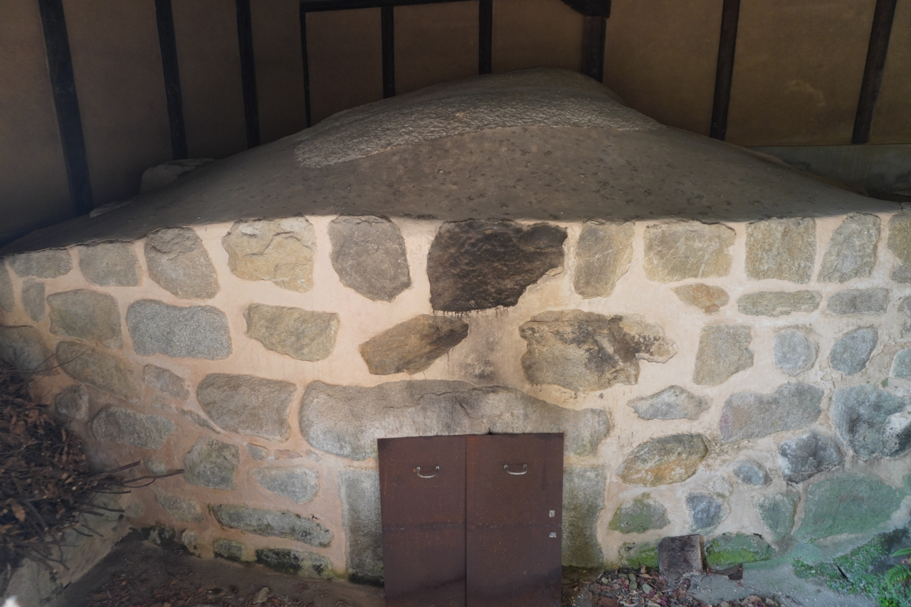 石風呂は、石室の中で薪。を燃やして石を焼き、医療の目的で蒸気浴を行うための施設。医療体制が整っていなかった時代に活用されたものだと思います。久賀の石風呂は、小屋の中にあって、けっこう大きなもの。西日本最古の石風呂で、昭和初年まで利用されていたということです。