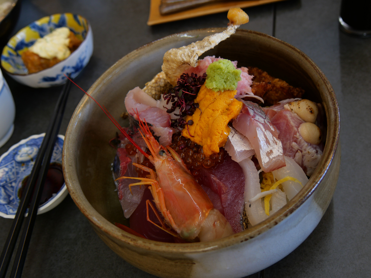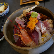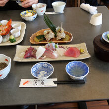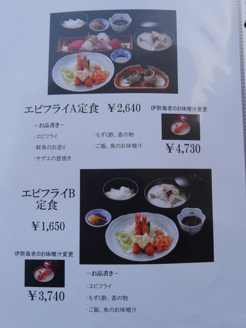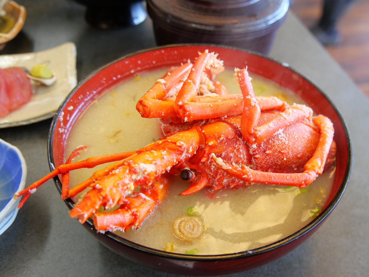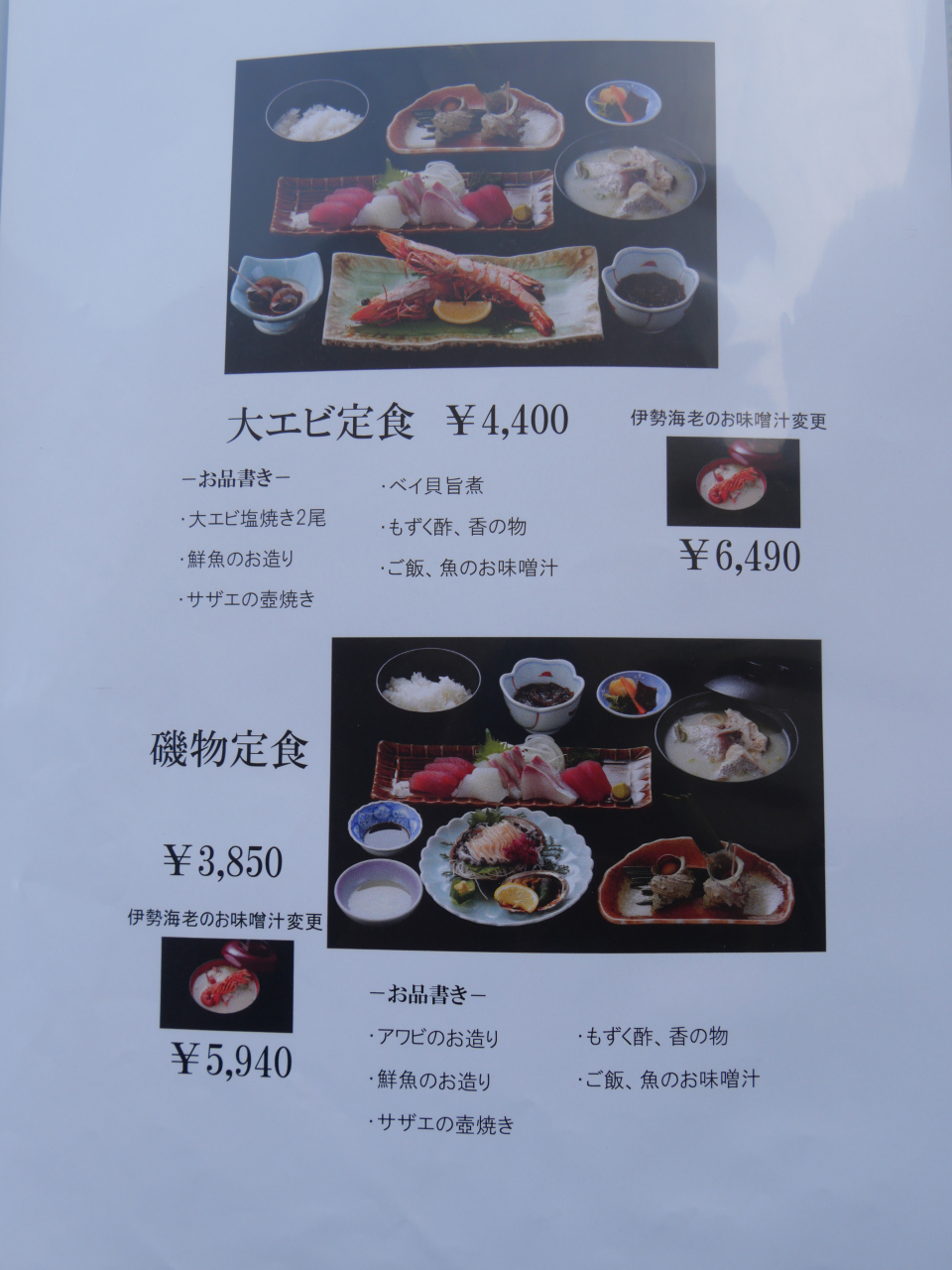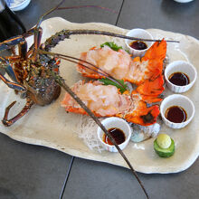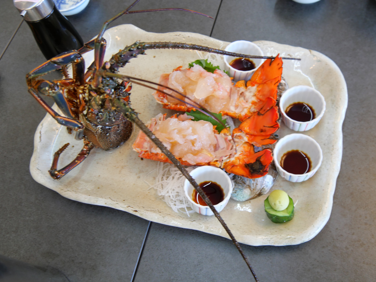 私たちはアワビや刺身が付いた磯定食や海鮮丼定食に一品料理の伊勢海老の造りを注文しました。伊勢海老の身がプリプリで甘味がありとても美味しかったです。