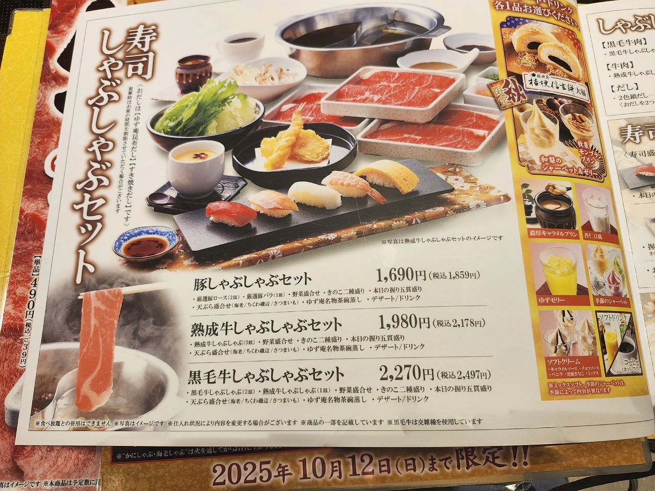 上旬・下旬に友人と2回程利用しました。ランチは『秋ゆず庵松花堂』ディナーは『しゃぶしゃぶセット』を味わいました。ランチは『きのこ鍋』や『サーモンいくら寿司』がディナーは『握り寿司』や『2種類のスープ』が美味しかったです。