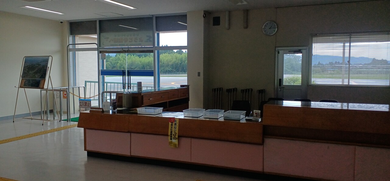 平成26年(2014年)4月1日より運休している佐渡空港。建物内はドアを開ければ入れパンフレットも置いてある。駐車場も滑走路もキレイに整備されている。滑走路と平行に道路があるので走ってみては。フェンス越しに駐機場も見られる。両津港から車で約10分。