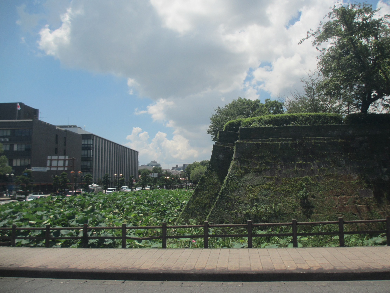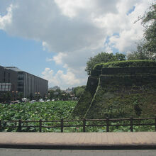 8月だったので、お堀に沢山の蓮が咲いていた。