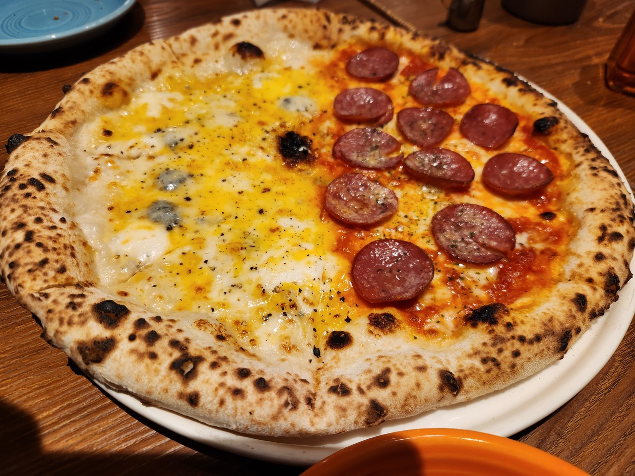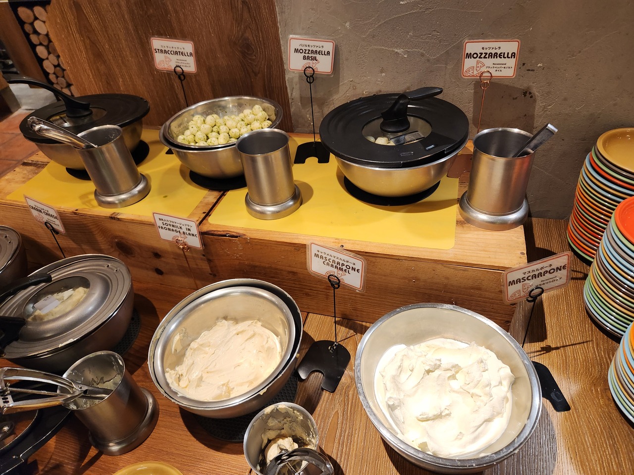 横浜駅岡田屋モアーズ8階にあるイタリアンレストランです。ピザやパスタがメインですが、こちらの売りは、やはりチーズの食べ放題です。モッツレラやマスカルポーネ、クリームチーズまど6~7種のチーズを選べます。ピザはハーフ&ハーフもオッケー、バスタはパフォーマンス付きのカルボナーラなど『映える』お料理が多いです。若いひと向きのレストランかもしれません。11月2日ディナー