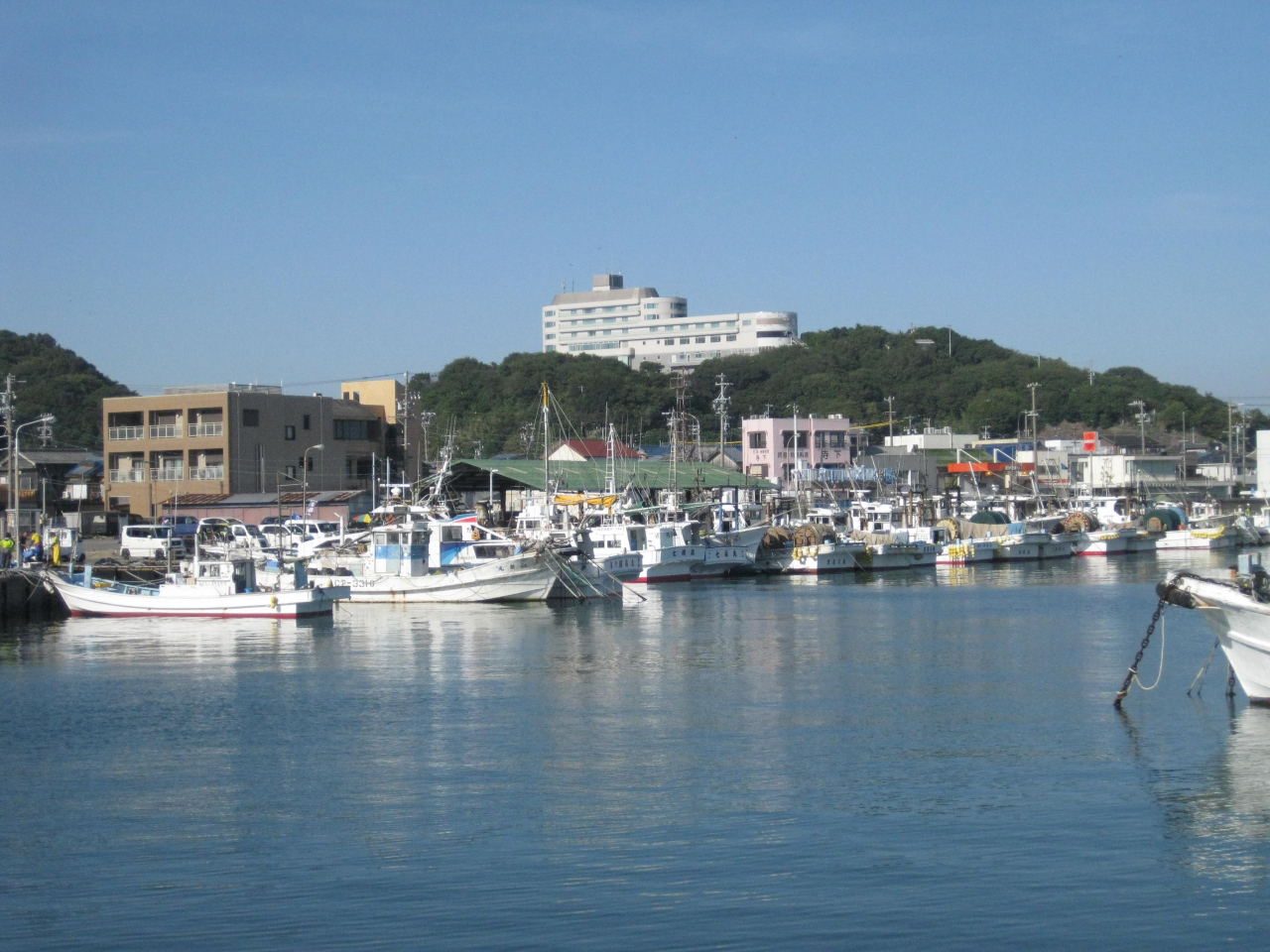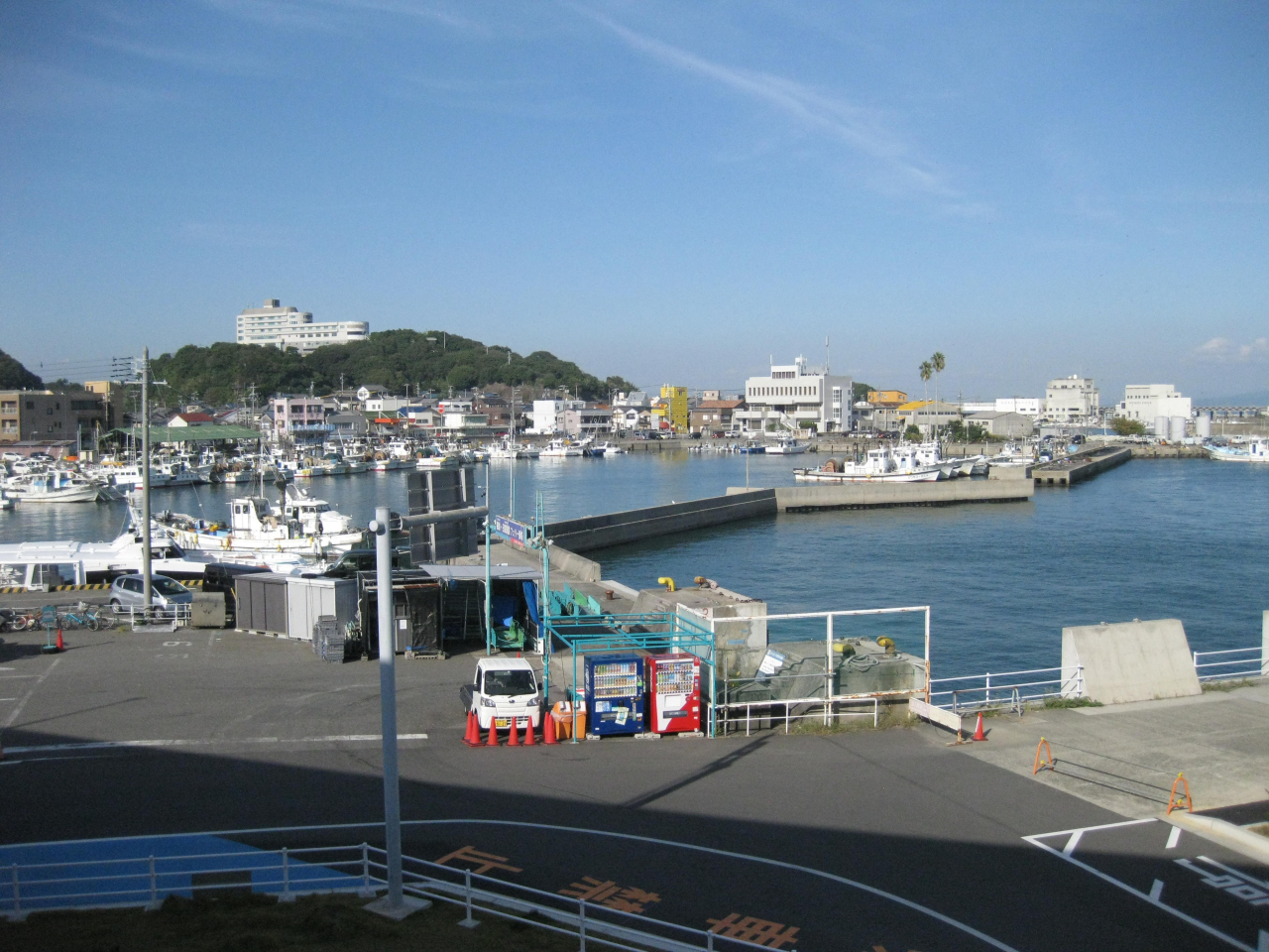 - 漁船、高速船、カーフェリーなどの船が見える港景色が素晴らしい