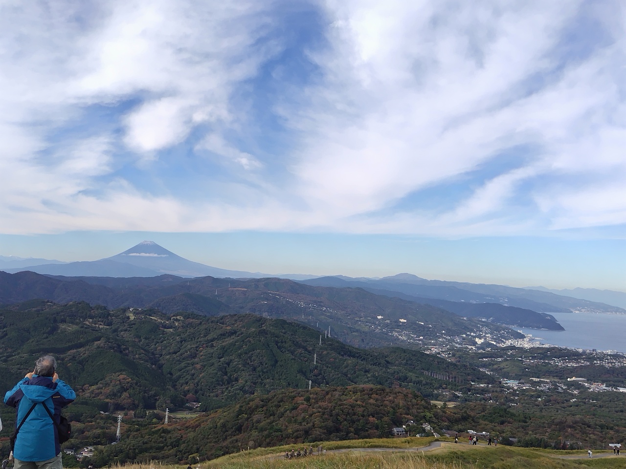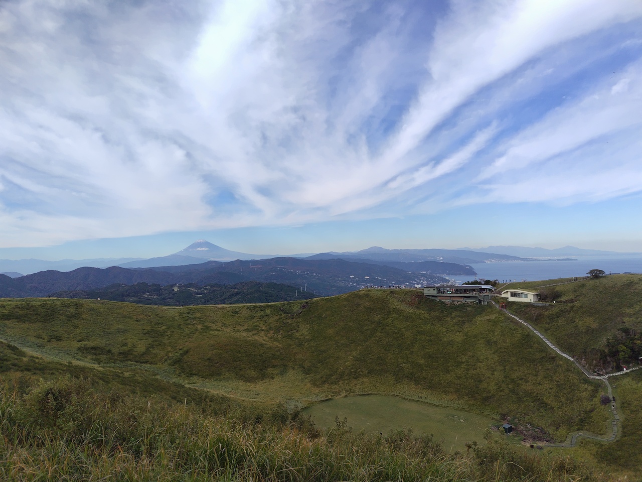 リフトに乗り山頂へ行くと幻想的な空模様でより美しい富士山に感動しました。一周できる遊歩道からは伊豆七島まで眺められ素晴らしい景色。