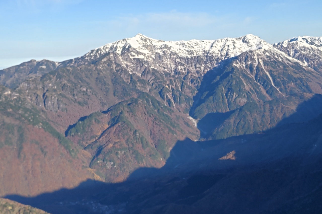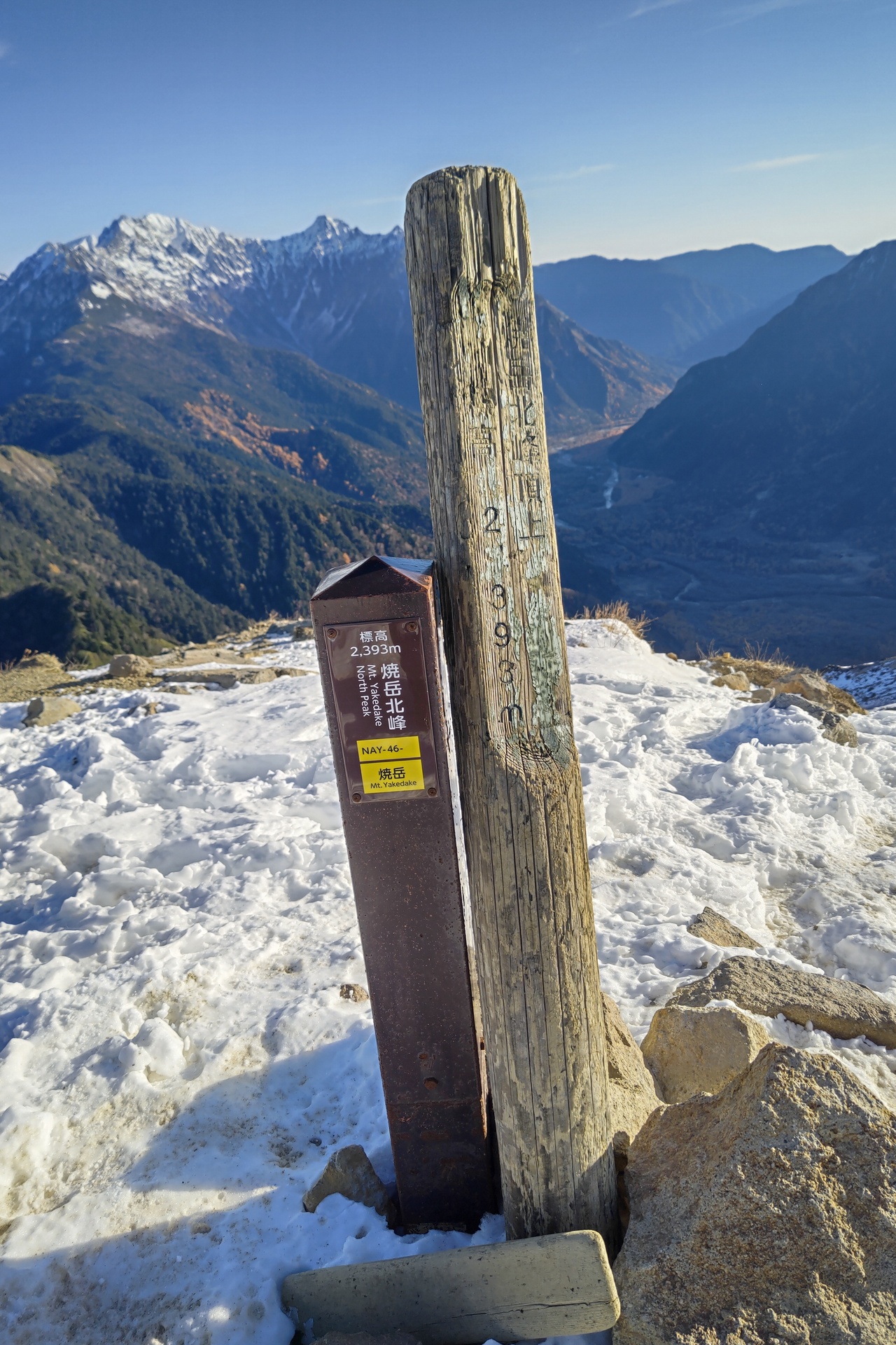 北アルプスにある日本百名山の一座。新中の湯登山口から登りました。登山季節のピークは外れていたため、普通は路駐になるのに駐車場に止める事ができました。標高が上がるにつれて、雪が出てきてチェーンスパイクを着用。頂上付近では、たくさんの所から煙が上がっていました。山頂からは北アルプスの白、赤、緑の三段紅葉を眺められました。