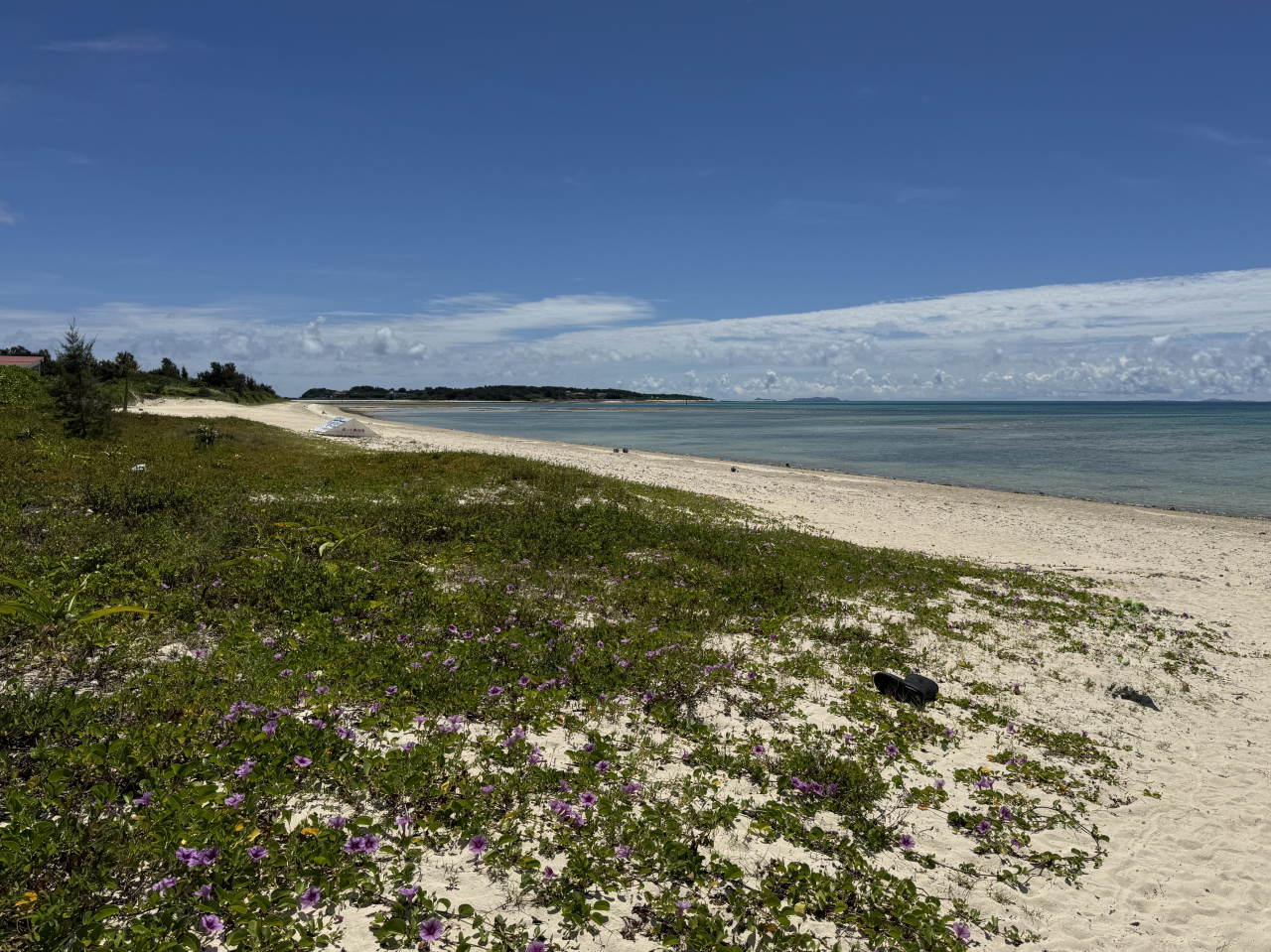 久米島イチの海水浴場と言われるイーフビーチ。近隣にホテル等宿泊施設が立ち並んでいることから、手軽に海水浴が楽しめるビーチとして知られるようになったようだ。ただ離島のビーチあるあるで、白砂の浜が2kmに渡って広がっている以外には何もない。駐車場付近にはマリンアクティビティを技としている業者もあったが、時期的に季節外れなのだろうか?活気があるようには見えなかった。