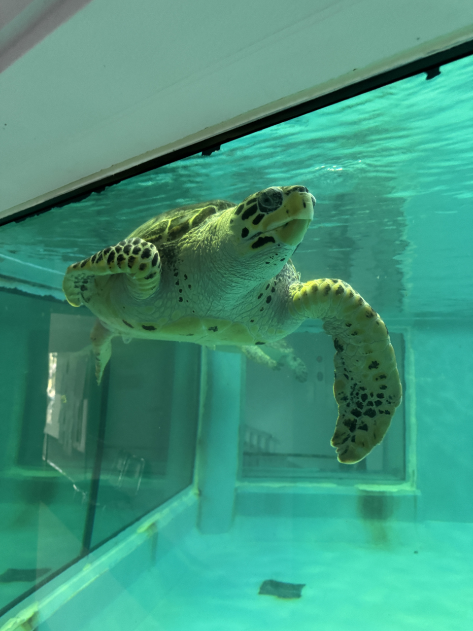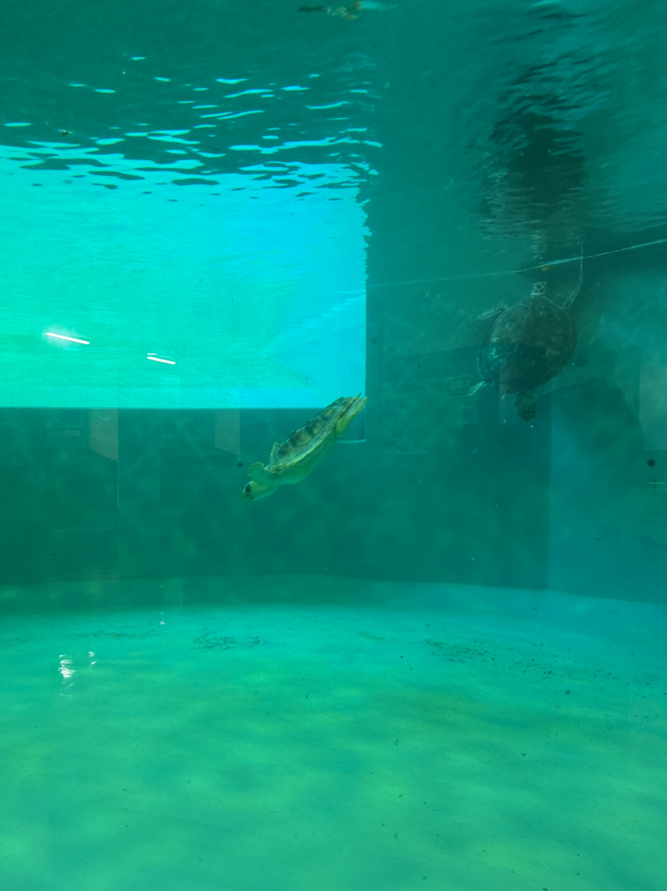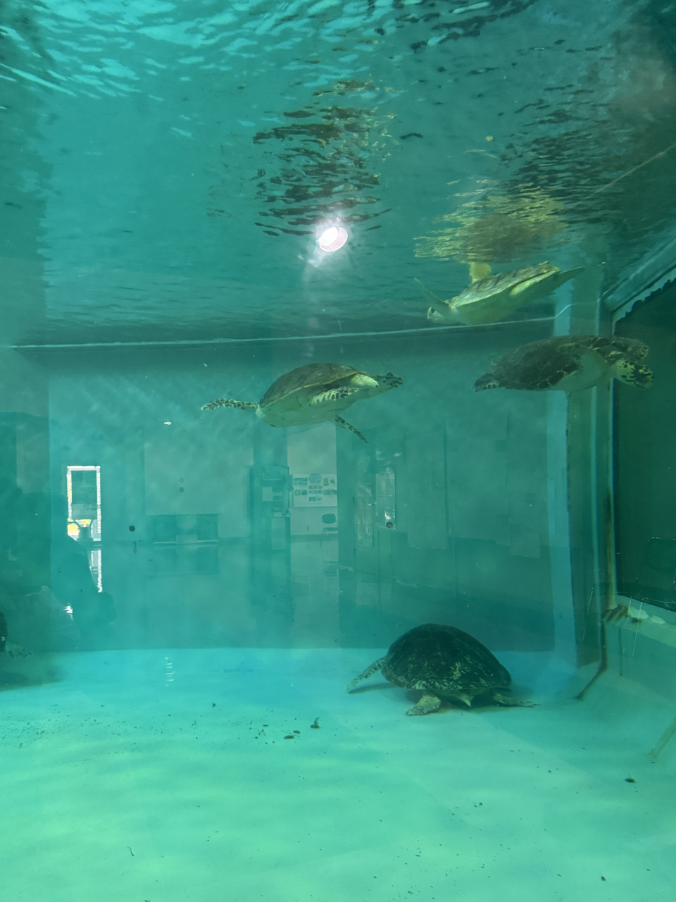 絶滅危惧種に指定されているウミガメの館として平成24(2012)年にオープンした久米島ウミガメ館。水槽内で泳ぐウミガメの姿や、ウミガメの生態系に及ぼす問題点を発信する場所として、存在の〝価値〟がある施設として立ち寄った。