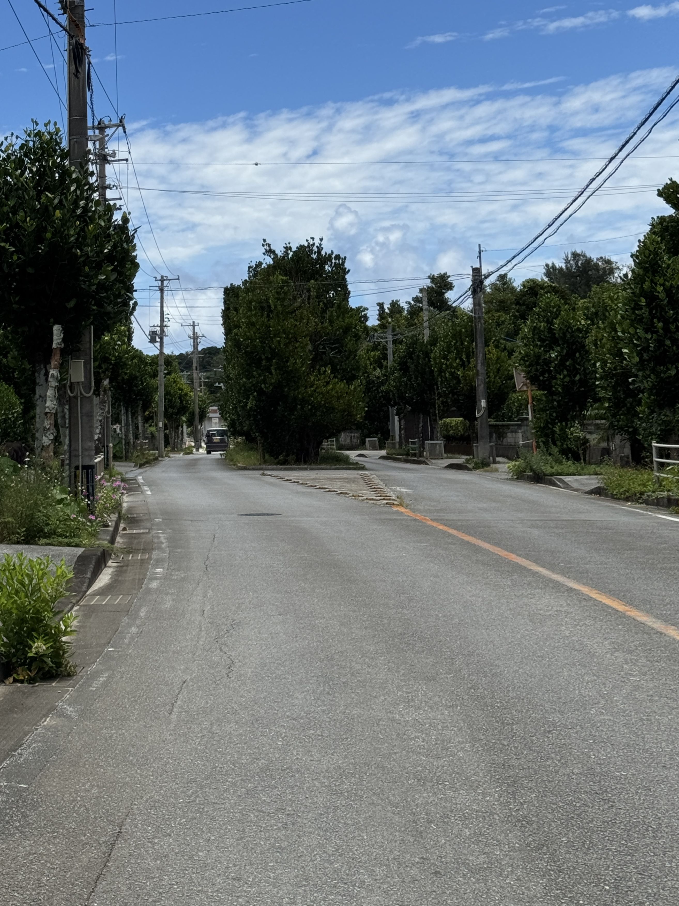 沖縄県道242号線を走っていると真謝集落内で道路の上下線が分かれる緑地帯にフクギの木が植わっている。約40mの長さのフクギ並木は道を遮るように存在し、ただならぬ気配さえ伺えるものとなっている。元来フクギは防風や防火、防潮を目的に屋敷の周囲に植えられてきたが、界隈の開発の際に道路拡張のため大部分が削られてしまい、現在はその一部分が残って現在の形で残されている。推定樹齢200年以上といわれる古木で沖縄県の天然記念物に指定されており、ただ〝道路拡張〟のためだけであれば、伐採されても仕方がない場所にある。それを敢えて残し続けるのは何らかの理由があるためだけであろう。その話に触れられているものは見当たらなかったが、100人いれば100人が存在に気付くフクギ並木に〝霊力〟を感じてしまった私であった。