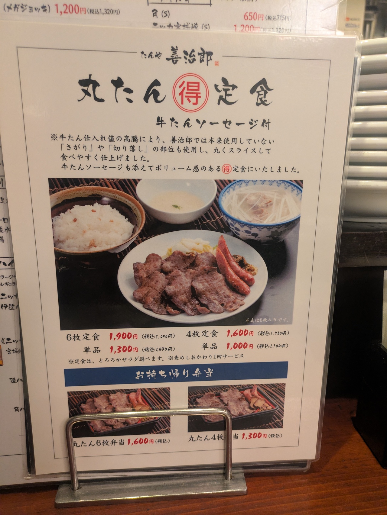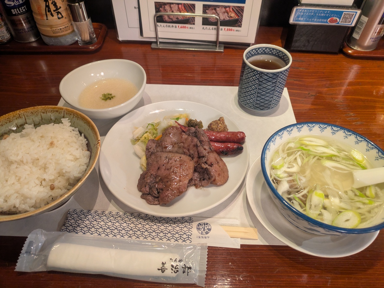駅から少し離れた五橋エリアのホテルに滞在したこともあり、すぐ近くの店で牛タンを食べようと思い入店。1人だったのでカウンターに通され、他にも数名すでに1人客が食事中でした。2千円以内に収めようとマル得定食を注文。悪くはないですが、次回は通常のメニューに戻します。