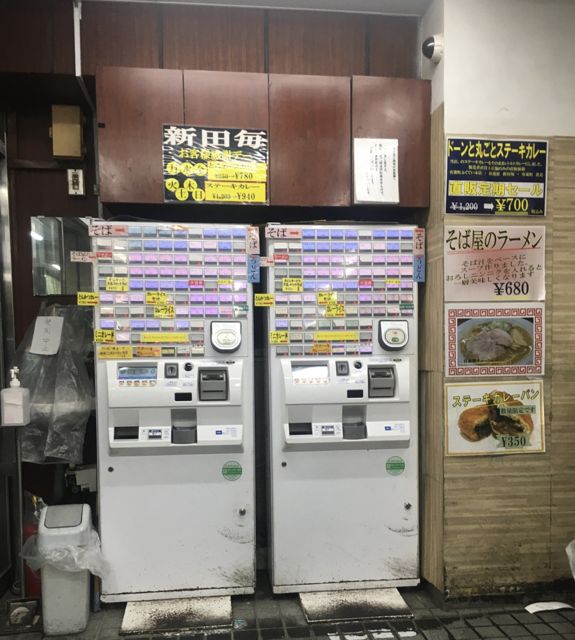 総武線秋葉原駅の千葉方面ホームに接した駅構内にありました。月火水曜日は、とんかつカレーが780円だったので自動販売機でsuicaで購入。レトルトカレーだと思いますがレトルト感はあまりなく、どろっとしたルーでとんかつは少し硬めでした。味は普通で、直ぐに提供されました。