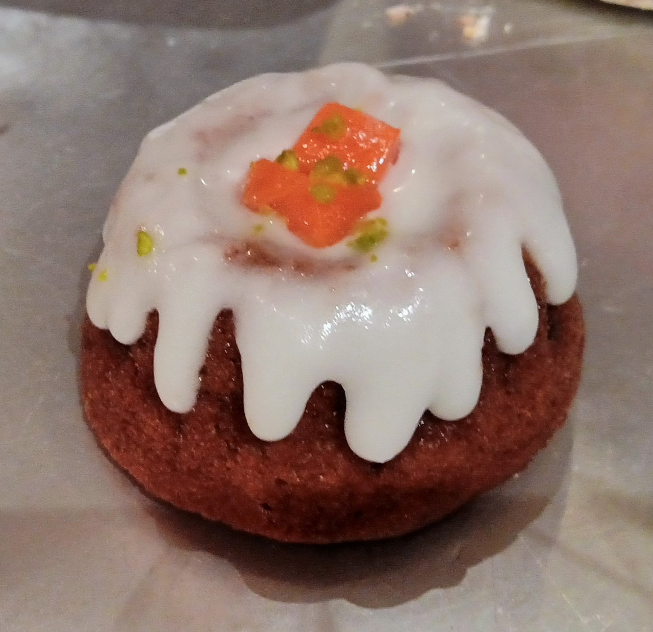 キャロットケーキは、シナモンやカルダモンなどのスパイスとたっぷりの人参を加えた生地に、チーズのフロスティング。