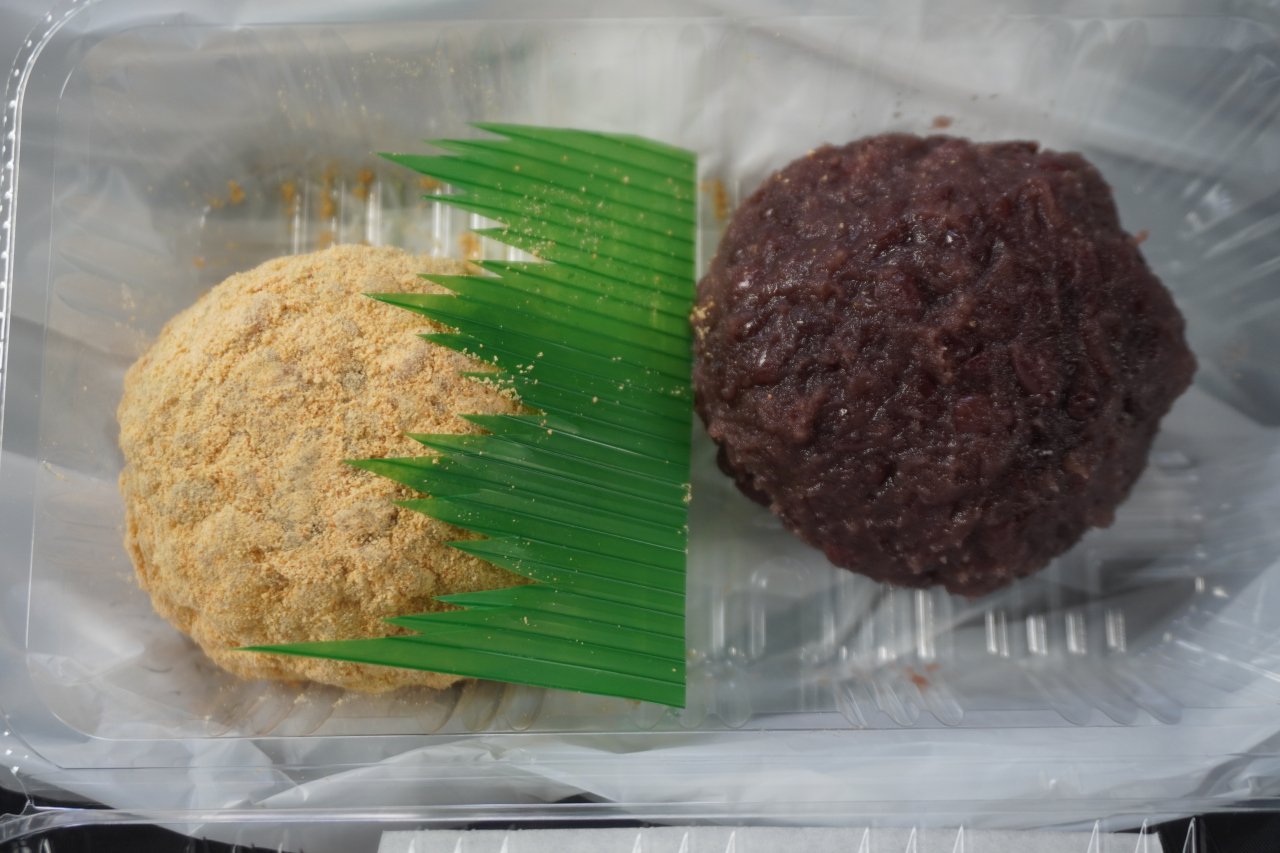 豪商稲葉本家の名物、ぼたもちをいただきました。餡子と黄な粉の二種類。六個入りが基本ですが、二個もできるということで餡子と黄な粉をひとつずつ。素直な味わいがかなり印象的。これはちょっと普通じゃないですね。想像以上にとてもおいしいぼたもちでした。