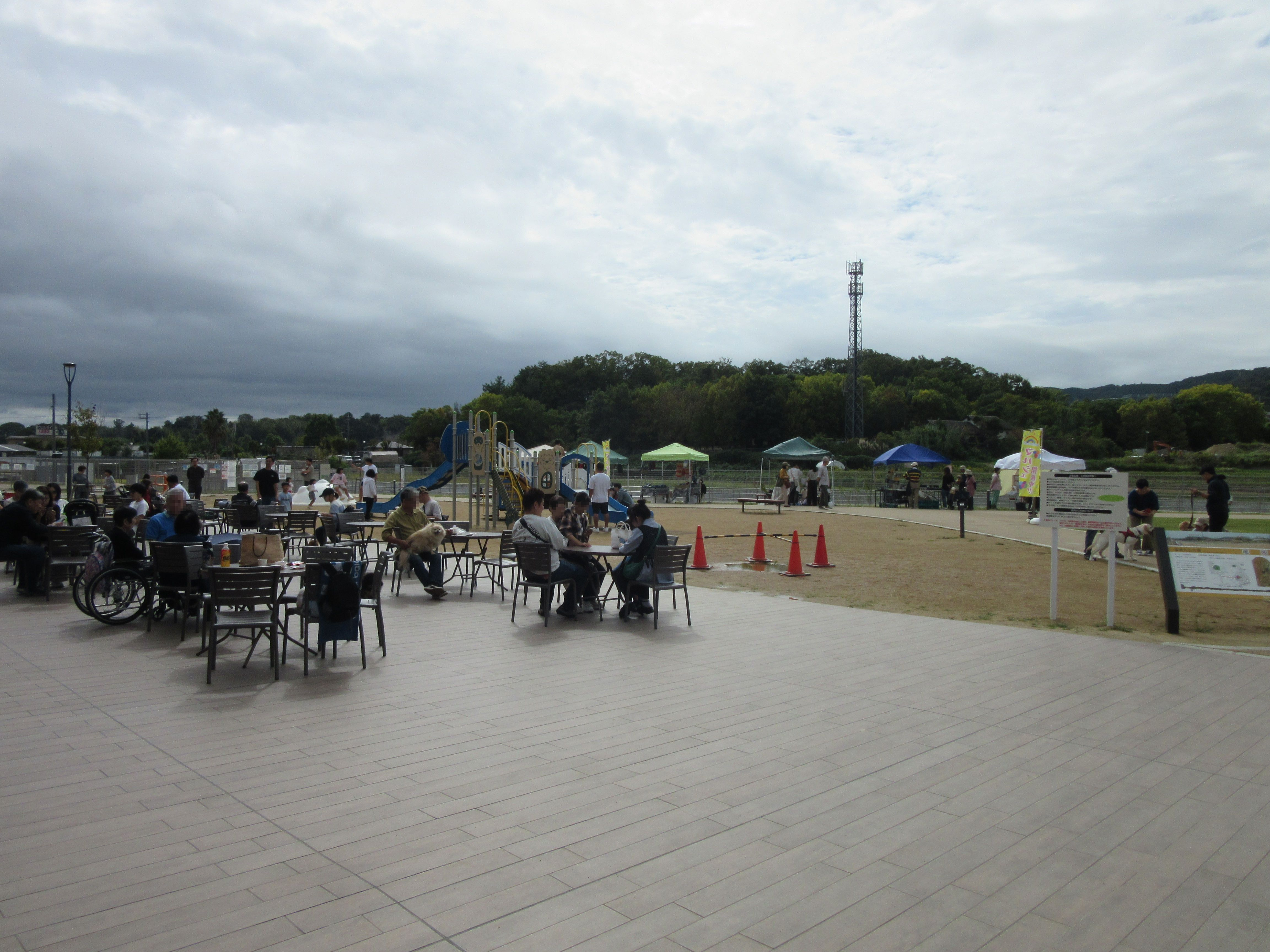 芝生広場やテラスが充実していて混雑しているものの狭さは全く感じず開放的な道の駅となっています。