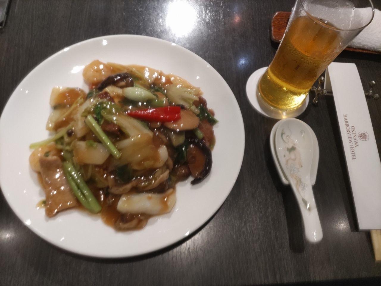 かた焼きそばをいただいたのですが、味付けがとても良かったです。できるだけ沖縄素材を使った日本人シェフのお店でした。小籠包も、さすがの味でした。近くにあったら、すぐにでも行きたいお店でした。