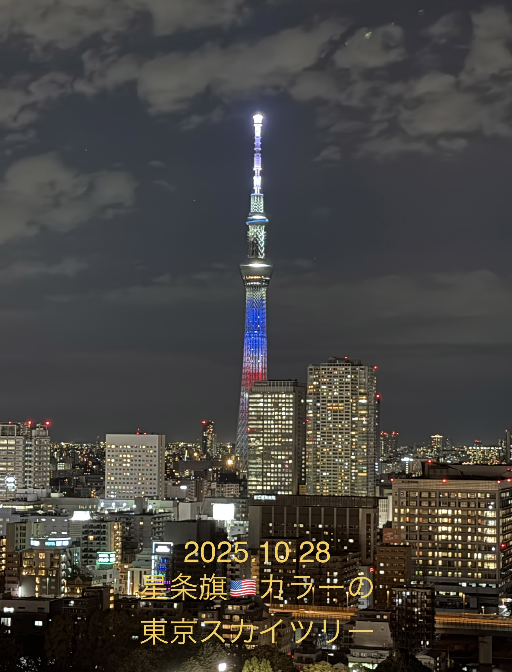 このトランプ大統領の来日に合わせて、27日と28日には星条旗カラーでライトアップされました。