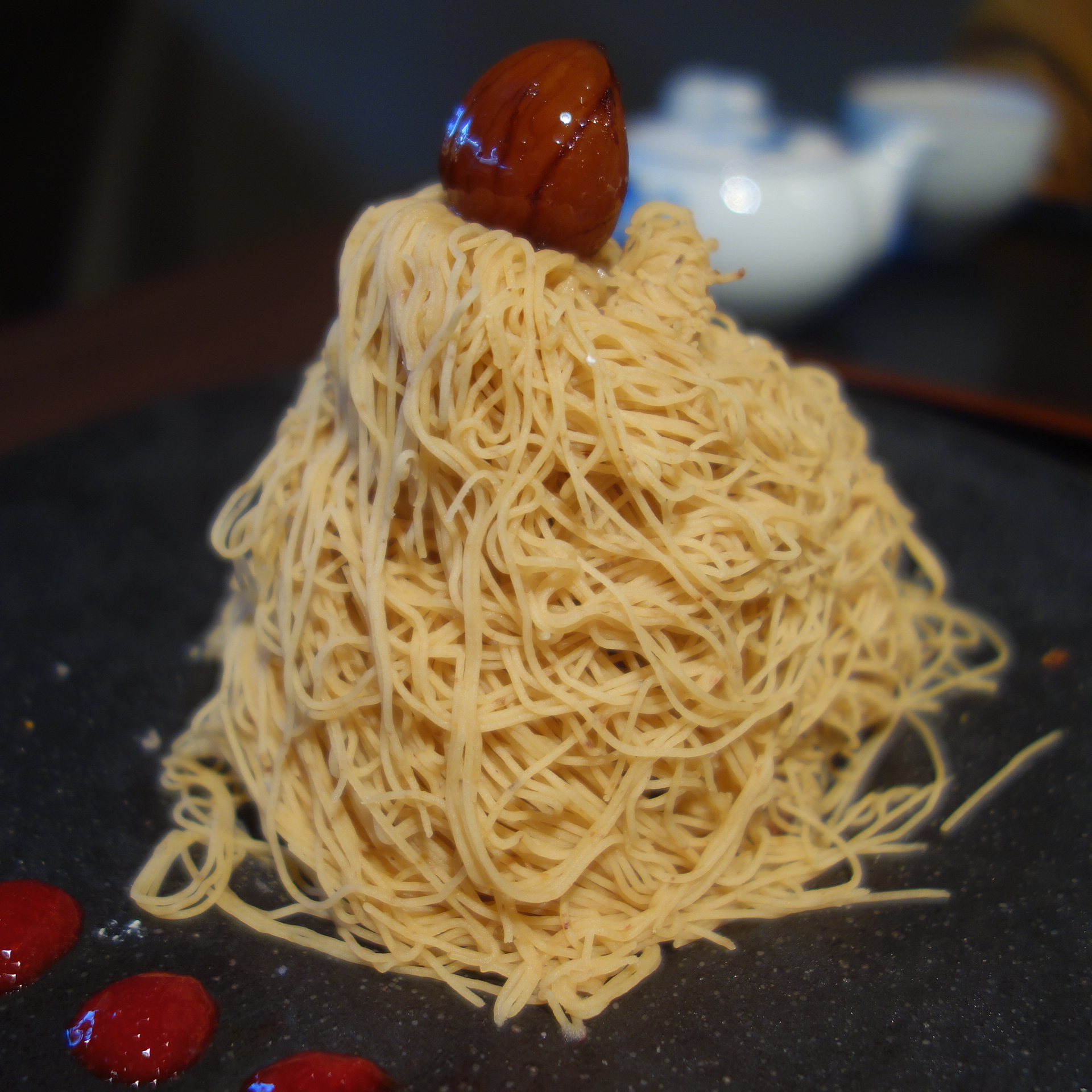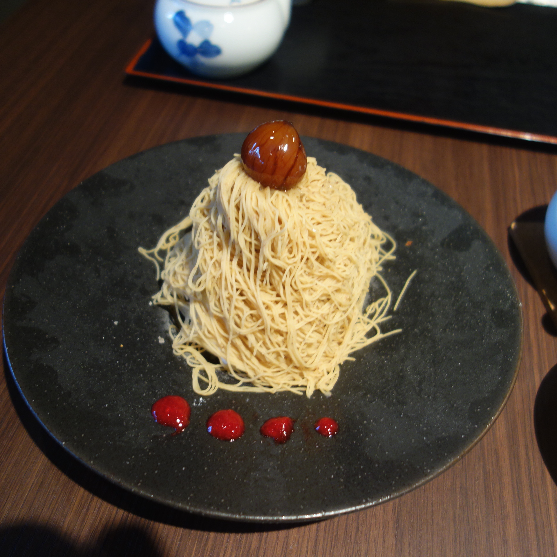 花見小路の比較的奥あります。以前はよく舞子さんと隣り合わせになったのですが、さいきんはご無沙汰です。店内も改装して一階は使っていないようです。できたてほやほやのアイスクリームがおいしいのですが、ほかもおいしい。今回はモンブランにしました。恭太ならではの味です。