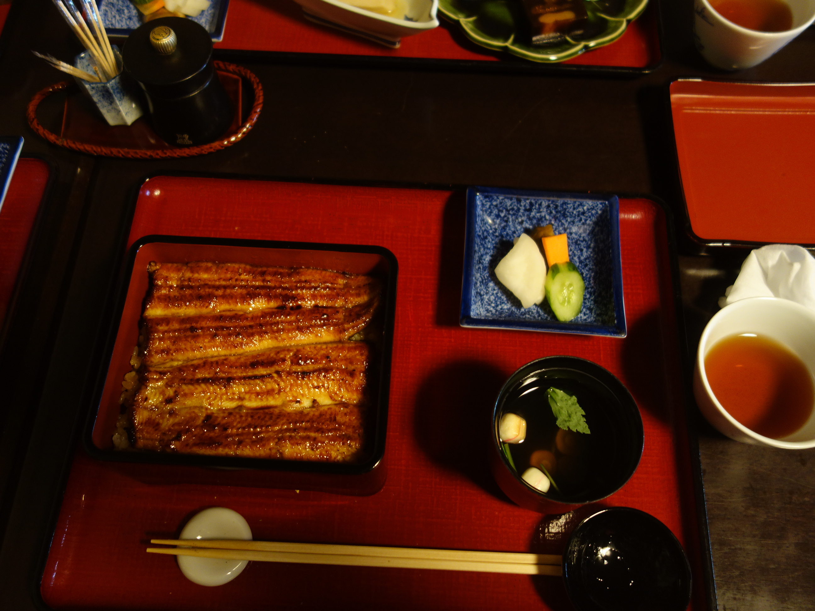 予約の電話はAI相手でした。駐車場があります。入口は菊水楼のほう。その端のほそいながいアプローチを奥にいきます。ウナギがおいしい。たれは濃いめでしょうか。しっかりとした歯ごたえで、食べた気になります。箸の先端が細いので、ご飯をつかむのに苦労しました。店内はあまり広くはない。お庭もあります。奈良のウナギ屋さんの代表といっていいでしょう。