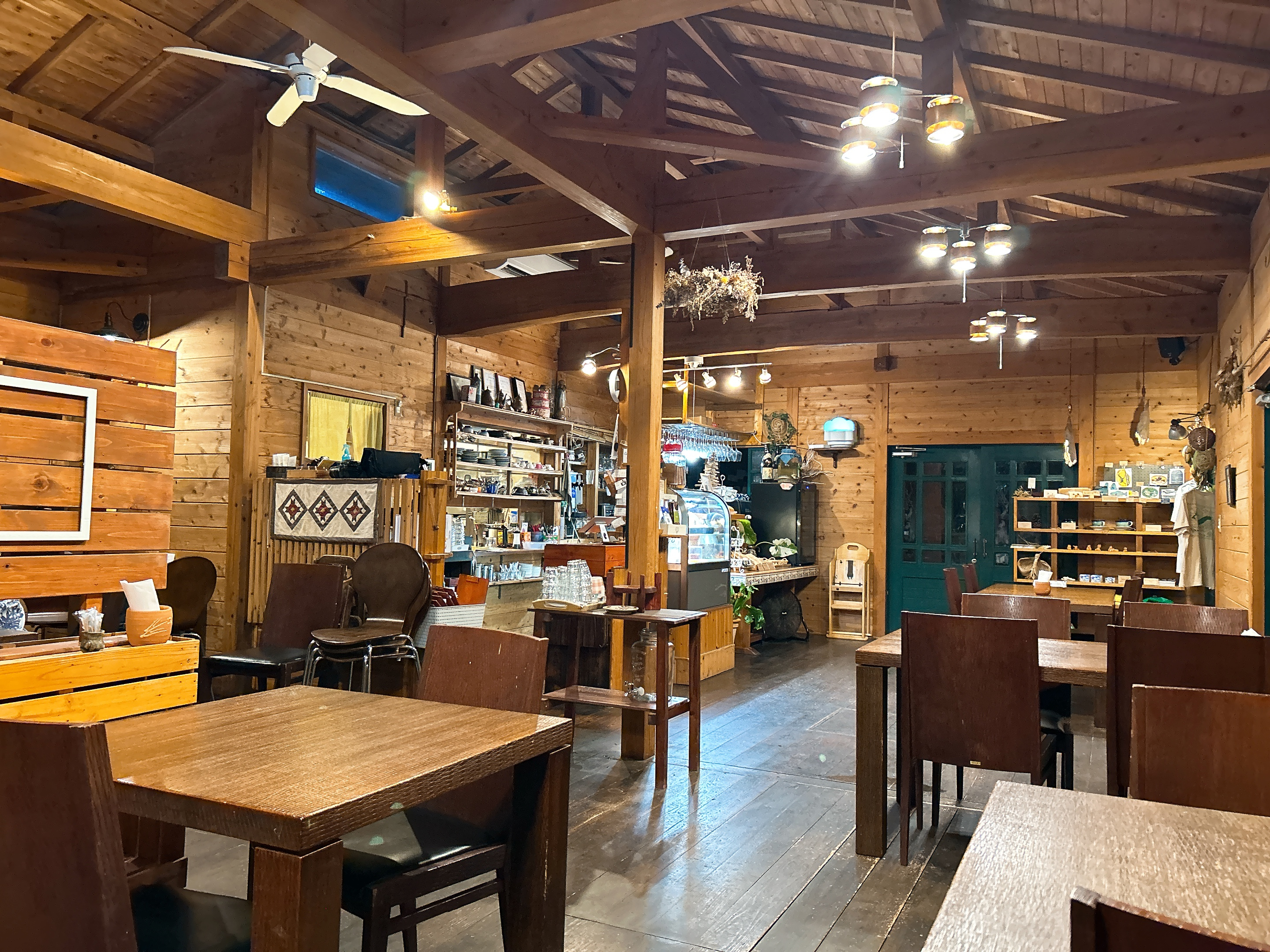 瀬底島のヒルトンの近くにある、南国コテージ風のカフェ。