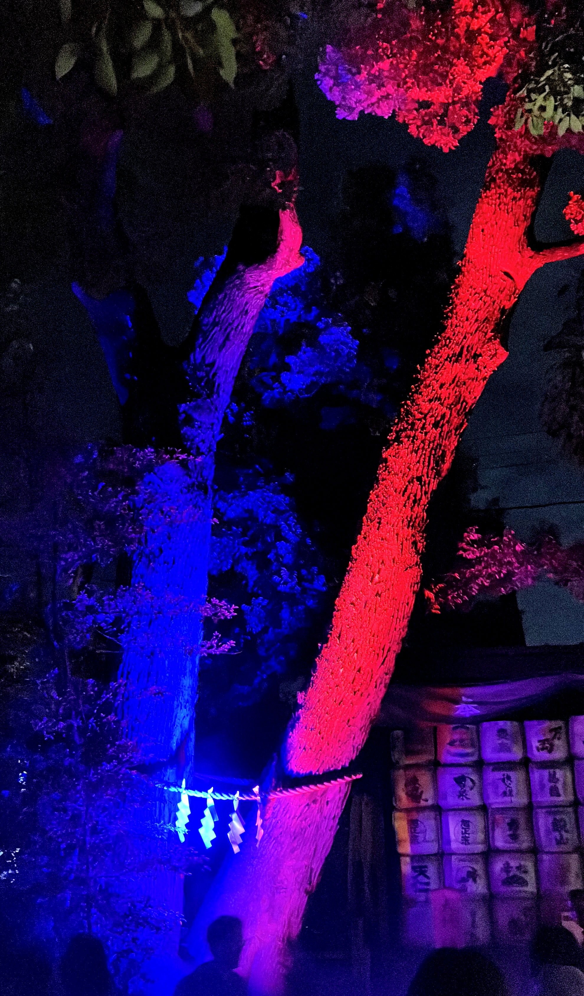 普段立ち入ることのできない夜の境内でイベントが行われ、光の演出により神域を彩るというものです。