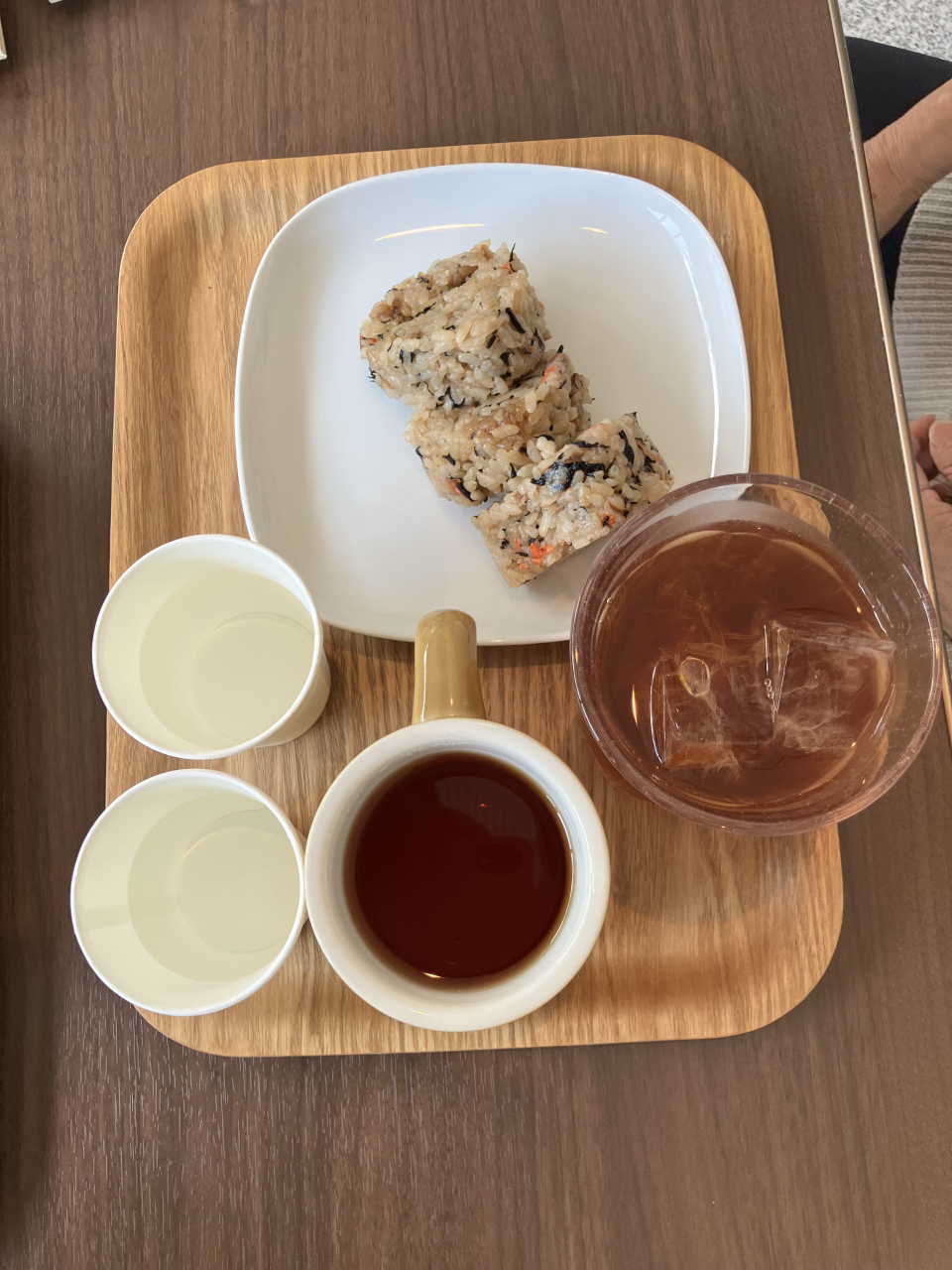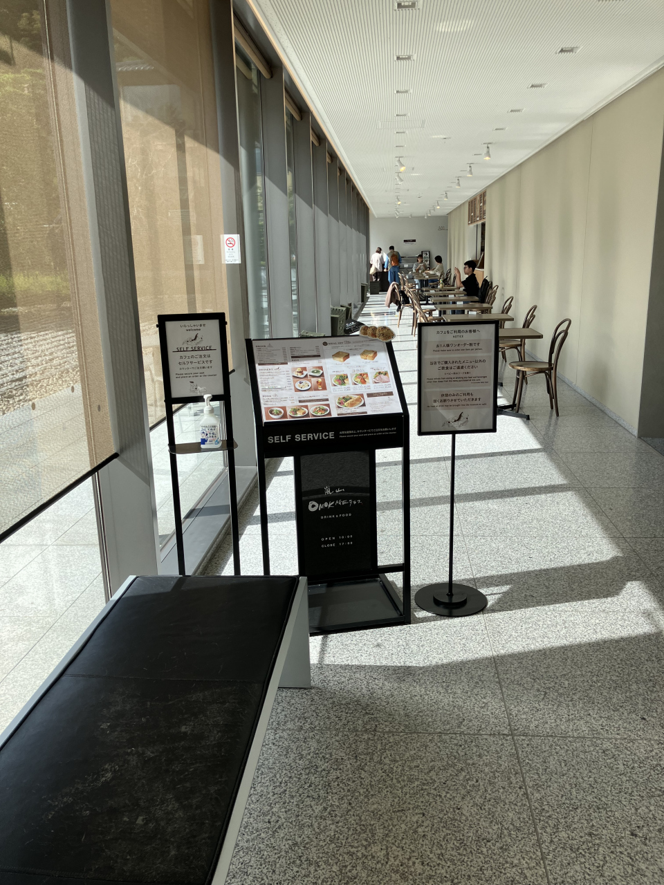 竹林の小径を観光した後中々食事する店がなく、美術館のロビーに庭を見ながら食事が出来る店があったので入ると、雰囲気もよく、パンの上に餡子が乗りその上にアイスが乗っていて道目も良く美味しかったです。私たちが入った時は2組しかいなかったけれど、店を出る頃にはほぼ満杯になっていました。