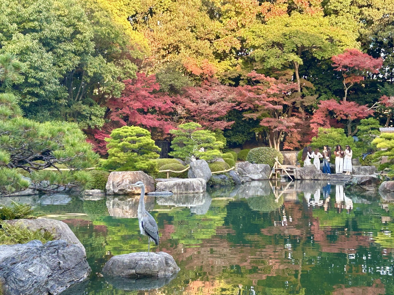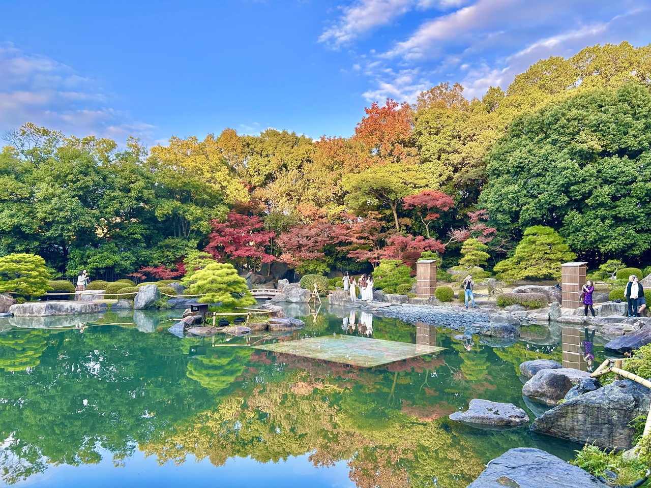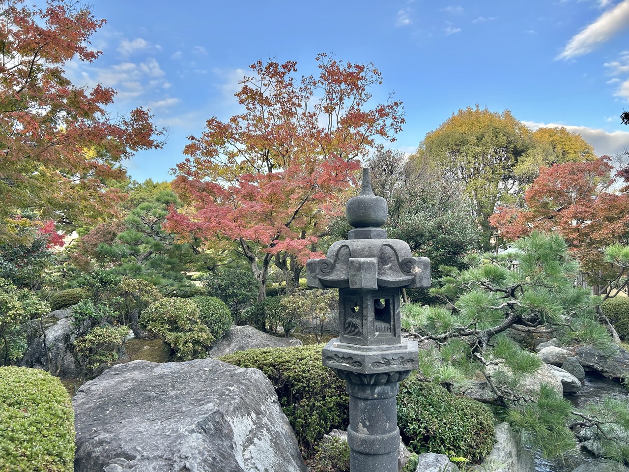四季折々の景色が楽しめる庭園で、大きな池があり、美しい光景でした。