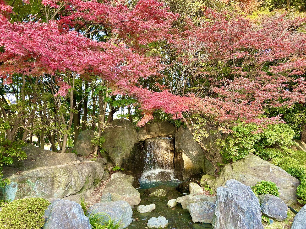 福岡市美術館や護国神社と隣接していて、非常に静かな落ち着ける庭園です。