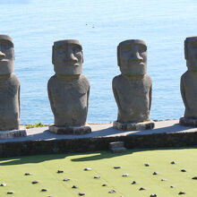 モアイ像の本場のイースター島があるチリ政府から許可されて、イースター島の聖地「アフ・アキビ」にある7体のモアイ像を模って本物と同じ素材・技術・行程で作られたという本物のモアイ像です。