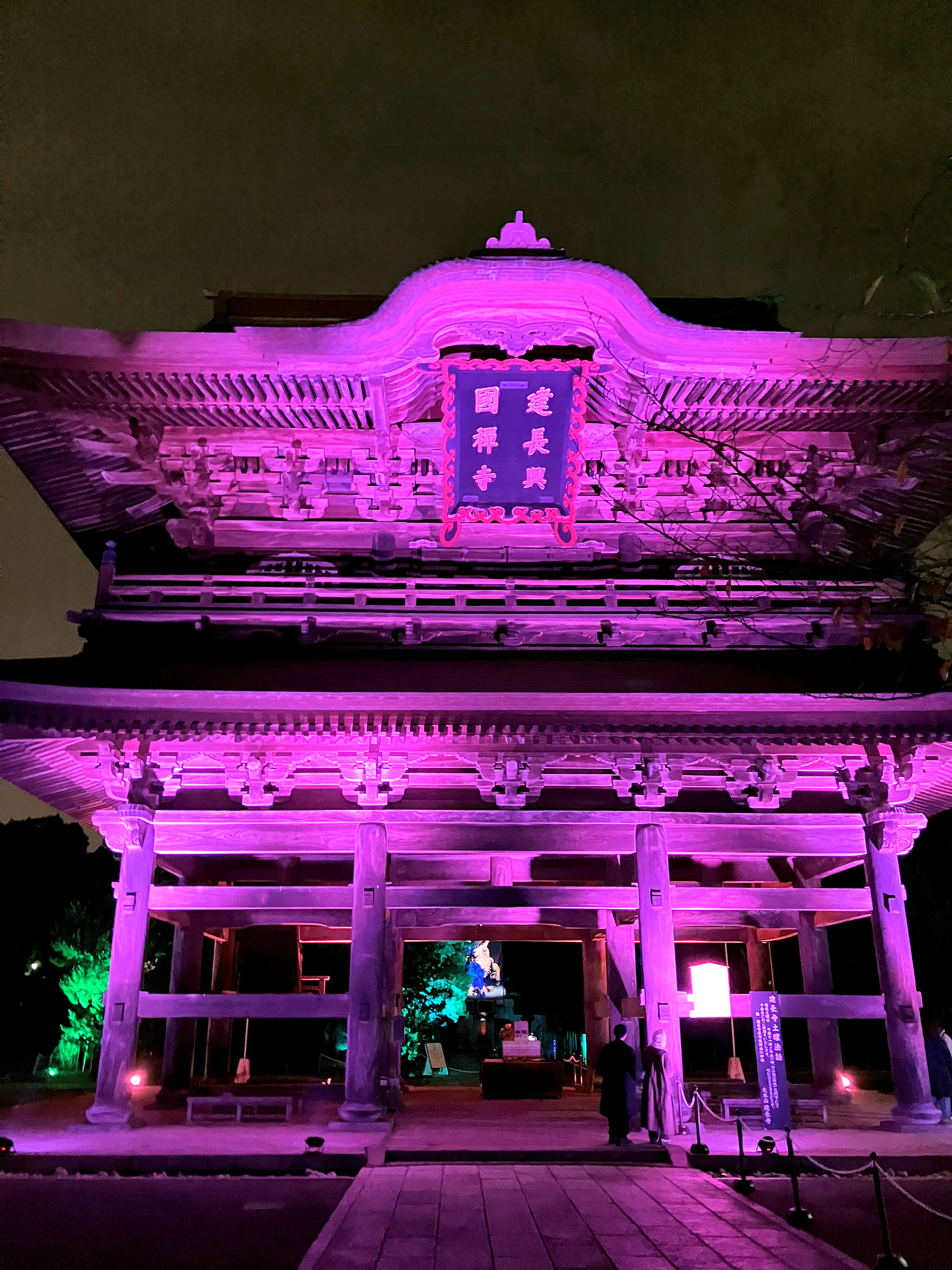 “静風の道”総門から三門へ続く道を「清風」が吹き渡りライトアップされた建長寺を拝観できました。