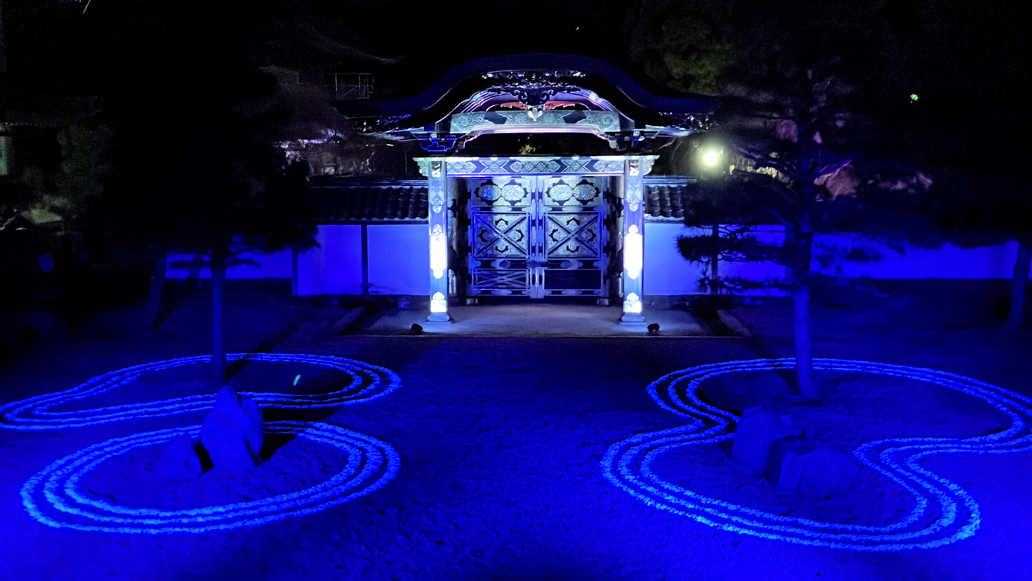 唐門のある悠玄庭では光の紋様が静寂に輝き、方丈庭園には「雲海」が現れます。