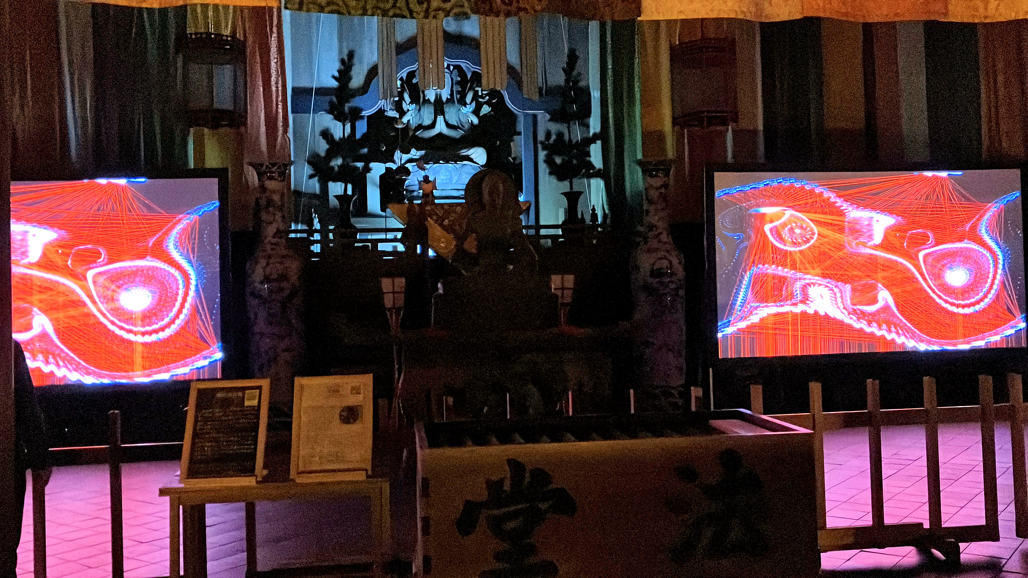 法堂の天井にある『雲龍図』と対をなすようにデジタルシミュレーションアート「龍雨図」が設置されていました。