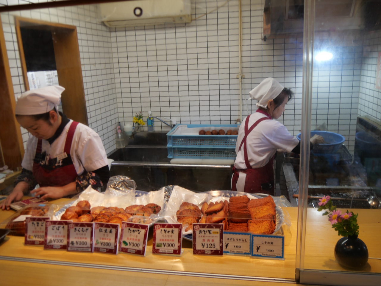 飫肥城跡を訪れた際に利用しました。飫肥名物の「おび天」を店内で揚げて提供する店で、その場でアツアツを食べることが出来ます。見た目はさつま揚げのようですが、材料に豆腐を加えてあるので少し軟らかめで、甘味もあり美味しいです。