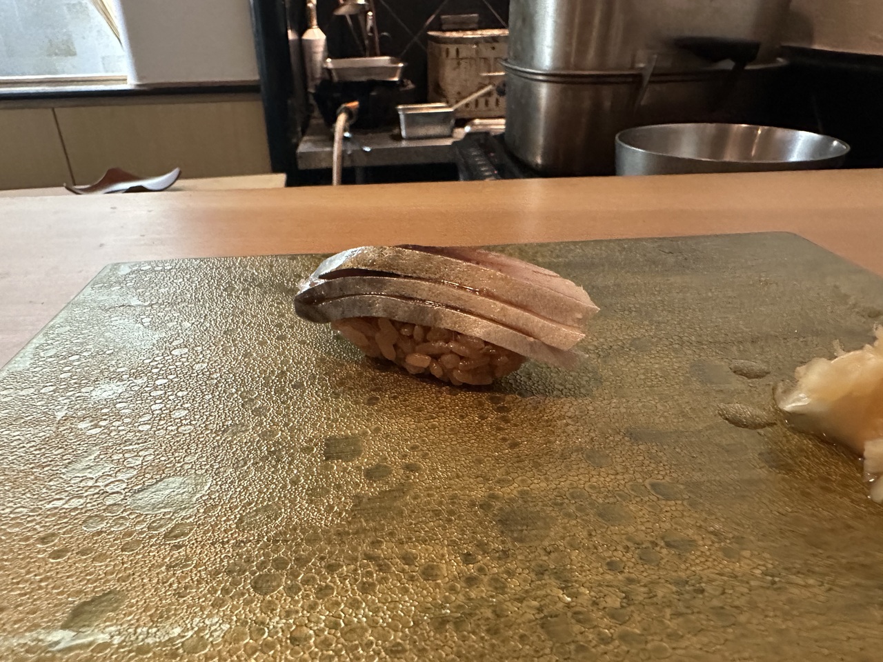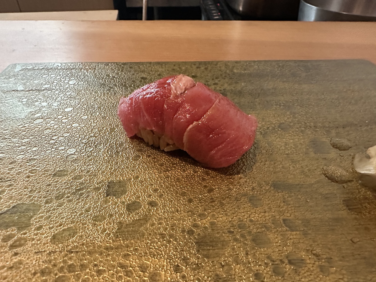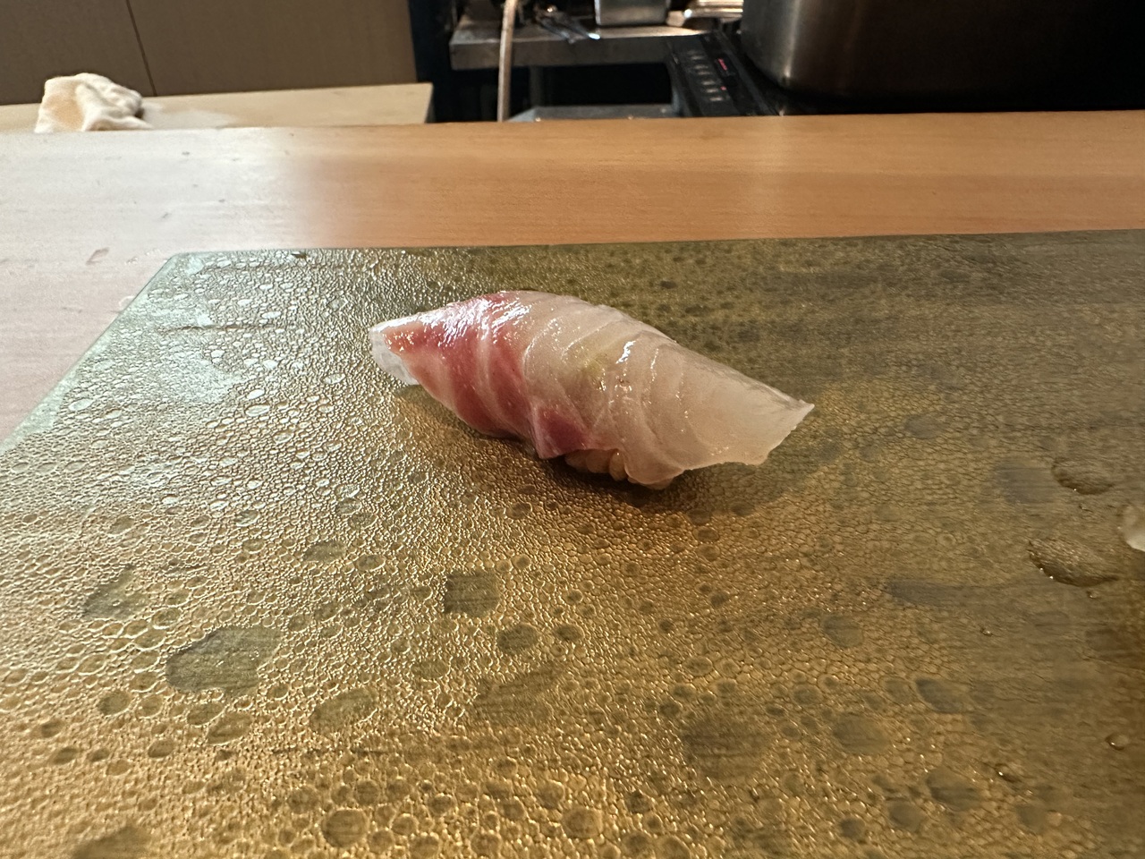 福岡の繁華街からは離れた姪浜駅から徒歩5分ほど、まわりもしずかな住宅地のマンションらしい建物の一階のお寿司屋さん。調理されるご主人と配膳などをされる女性の方お二人で営んでおられます。店舗や人件費が抑えられている分お値段もお手頃なこういったお店はあたりのことが多いのですが、こちらも大当たり。そんなに馬鹿高い食材ではなく、良い魚の良い部分を丁寧に調理されたお寿司やおつまみがいただけます。お任せのコースだとおつまみなどが出た後にまとめてお寿司が握られることが多いのですが、こちらは握りの間にも別の料理が入るスタイルです。一番お値頃のコースをいただきましたが、十分満足。お勧めでいただいた日本酒も地元のもので美味しかったです。福岡に行く機会があればまたお邪魔したいお店。