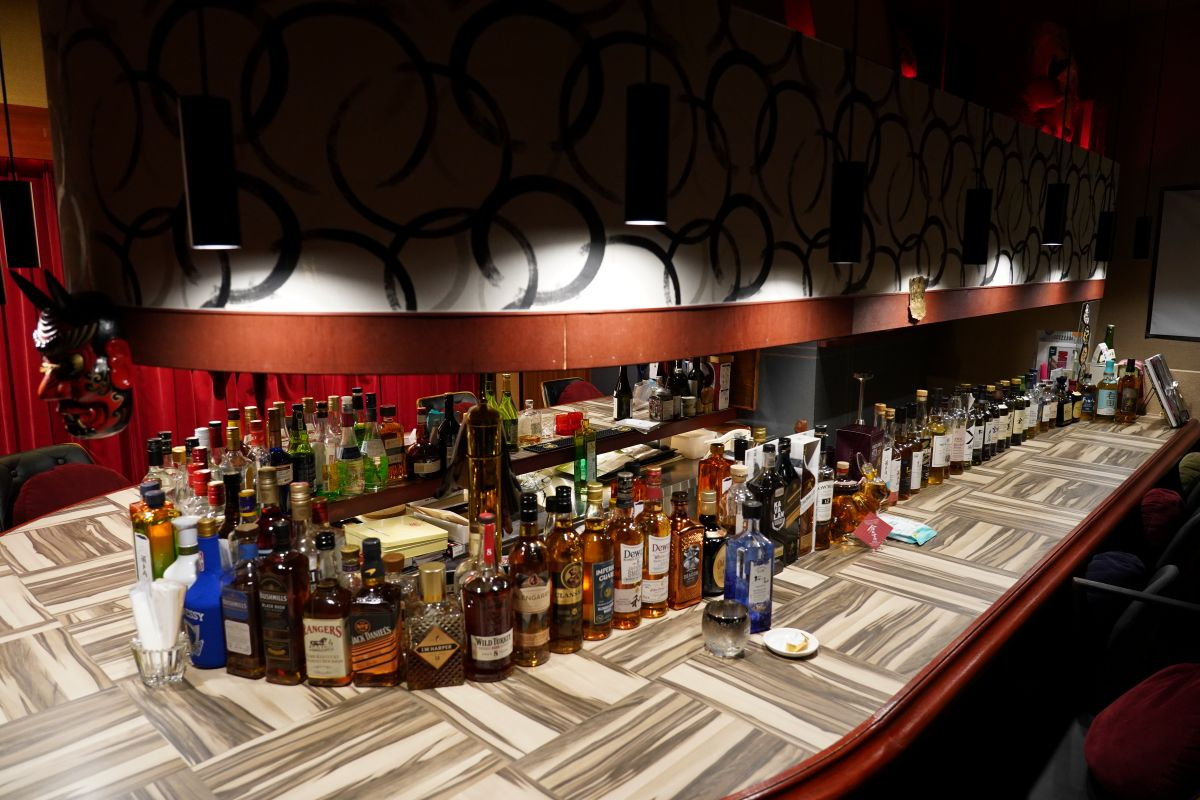 呉駅近くにある落ち着いた風情のあるバーです。店内は、細長い馬蹄型のカウンターのみで、全体的に古風な感じです。壁には、戦艦長門の古い絵が飾られていました。呉の市街地は、空襲で焼け野原となったので、戦後の建物だと思いますが、歴史を感じます。カウンターに洋酒がずらりと並んでいますが、広島県産のジンも多くありました。場違いのような若い客がいましたが、店主に訊くと、以前、何かしらのゲーム関係者が訪れて以来、ファンが訪れるようになったそうです。とは言え、基本的には、呉の大人のバーのようです。